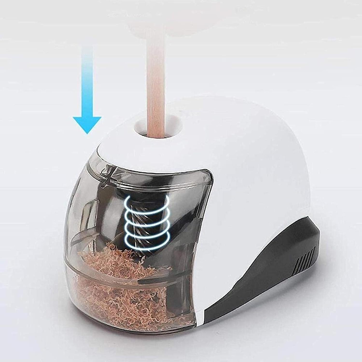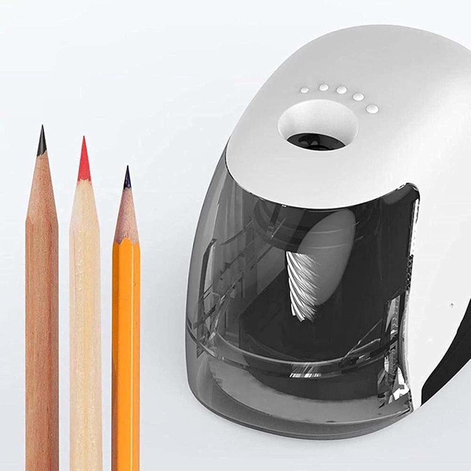 【 Facile da pulire e senza detriti 】Con un vano di stoccaggio dei trucioli di grande capacità, non c'è bisogno di preoccuparsi che i trucioli si spargano su tutto il posto ed è facile da pulire. 【Sicuro e affidabile 】Il temperamatite automatico è progettato con un meccanismo di arresto automatico, perché il rasoio smetterà automaticamente di funzionare, quindi questo temperamatite elettrico può essere utilizzato in sicurezza. 【Temperamatite elettrico automatico con contenitore