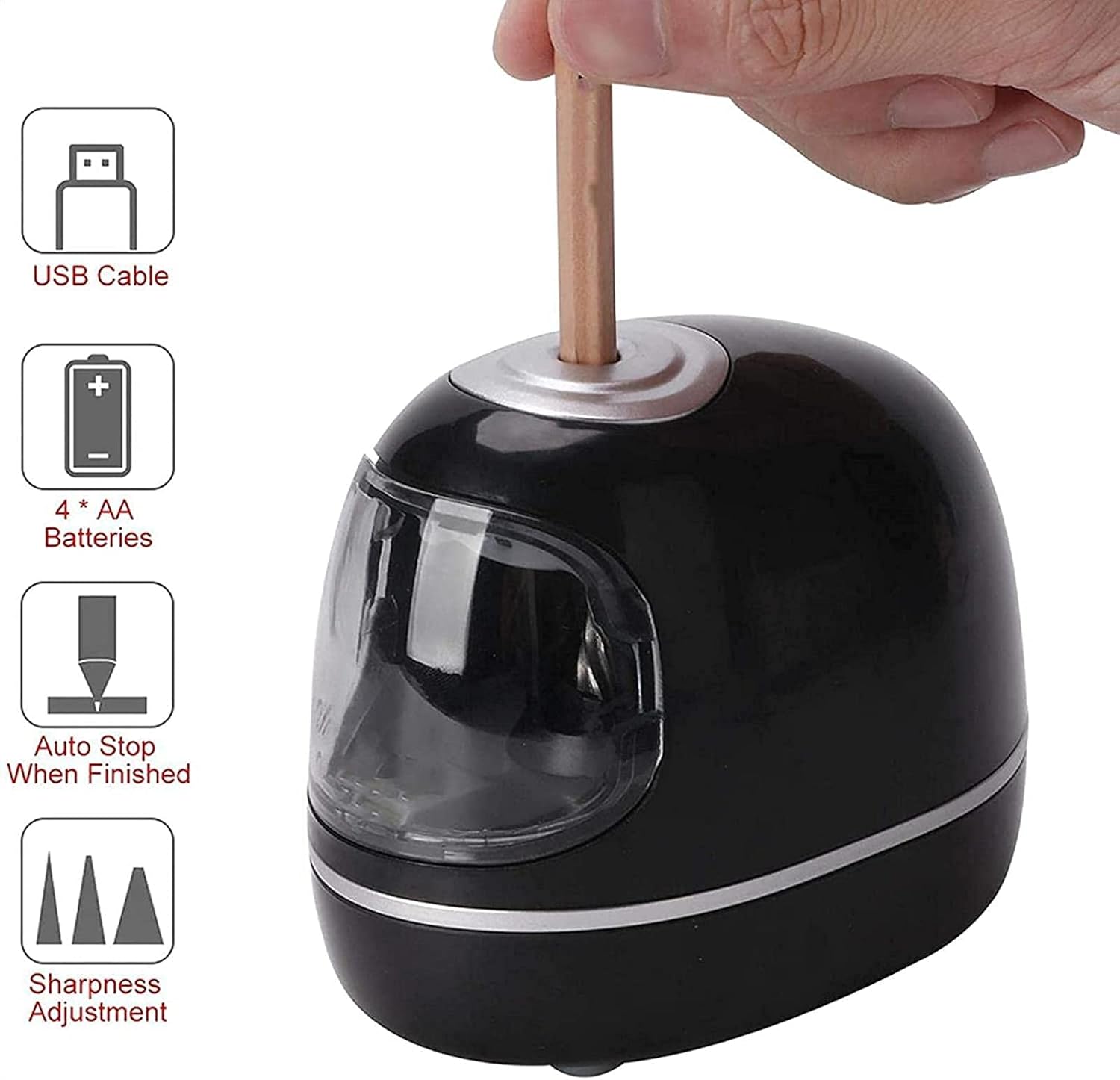 【 Facile da pulire e senza detriti 】Con un vano di stoccaggio dei trucioli di grande capacità, non c'è bisogno di preoccuparsi che i trucioli si spargano su tutto il posto ed è facile da pulire. 【Sicuro e affidabile 】Il temperamatite automatico è progettato con un meccanismo di arresto automatico, perché il rasoio smetterà automaticamente di funzionare, quindi questo temperamatite elettrico può essere utilizzato in sicurezza. 【Temperamatite elettrico automatico con contenitore