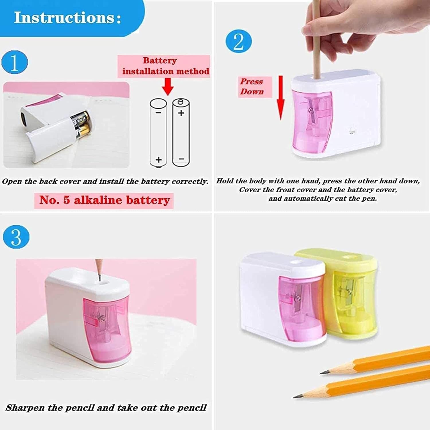 Nome prodotto: temperamatite Materiale: plastica Tipo: elettrico Colore: blu, rosa, giallo Ambito di applicazione: schizzo artistico, ufficio, studio, ecc. prompt: a causa della misurazione manuale, potrebbero esserci degli errori, si prega di consentire una differenza di 1-3 cm, grazie. Poiché i riflettori e le diverse persone hanno colori diversi, potrebbe esserci una certa differenza di colore, ma entro un intervallo ragionevole, si prega di scegliere con attenzione. Crediamo di poter soddisfare le vostre esigenze e fornire prodotti di alta qualità. Se riscontrate problemi con i nostri prodotti, non esitate a contattarci via e-mail per risolvere il problema. La vostra condivisione e il vostro feedback sono benvenuti, in modo che possiamo fornirvi prodotti e servizi migliori.