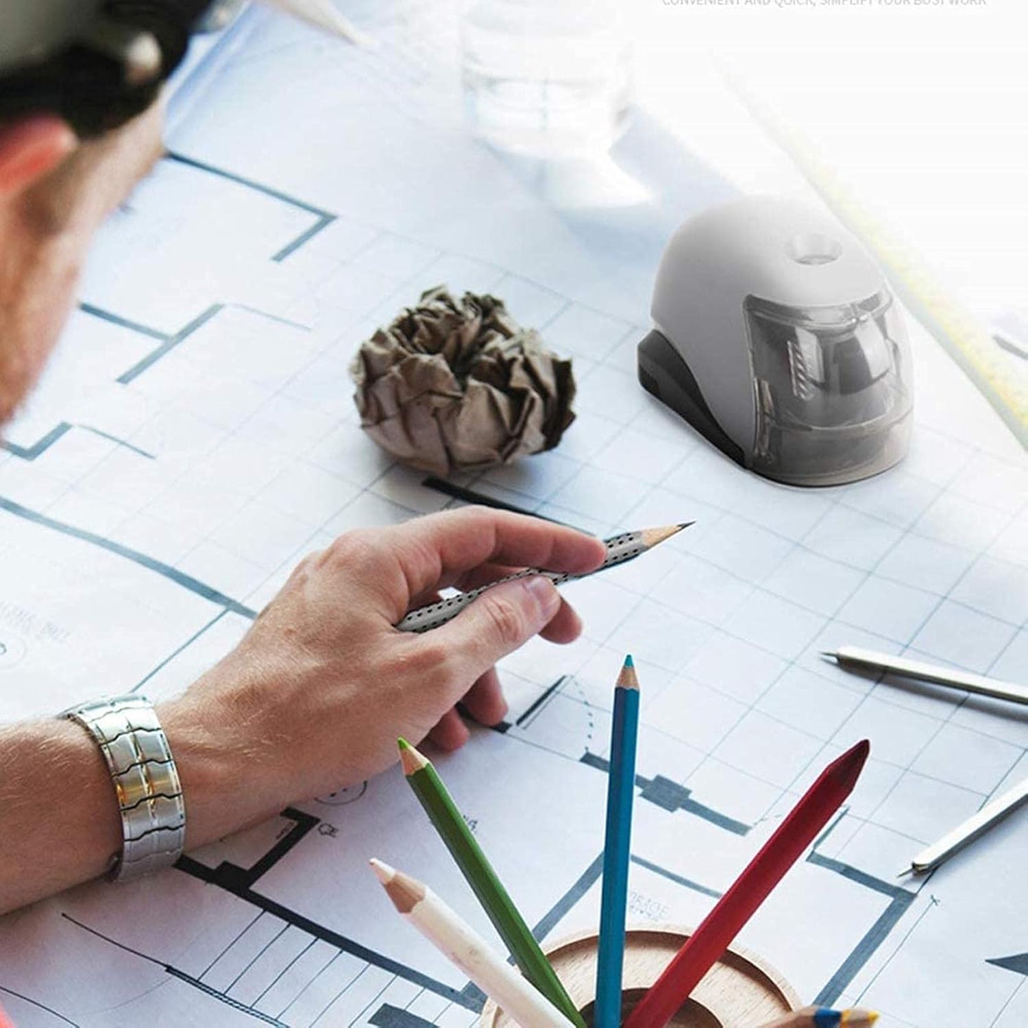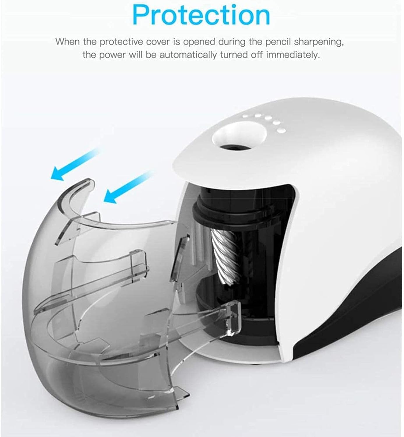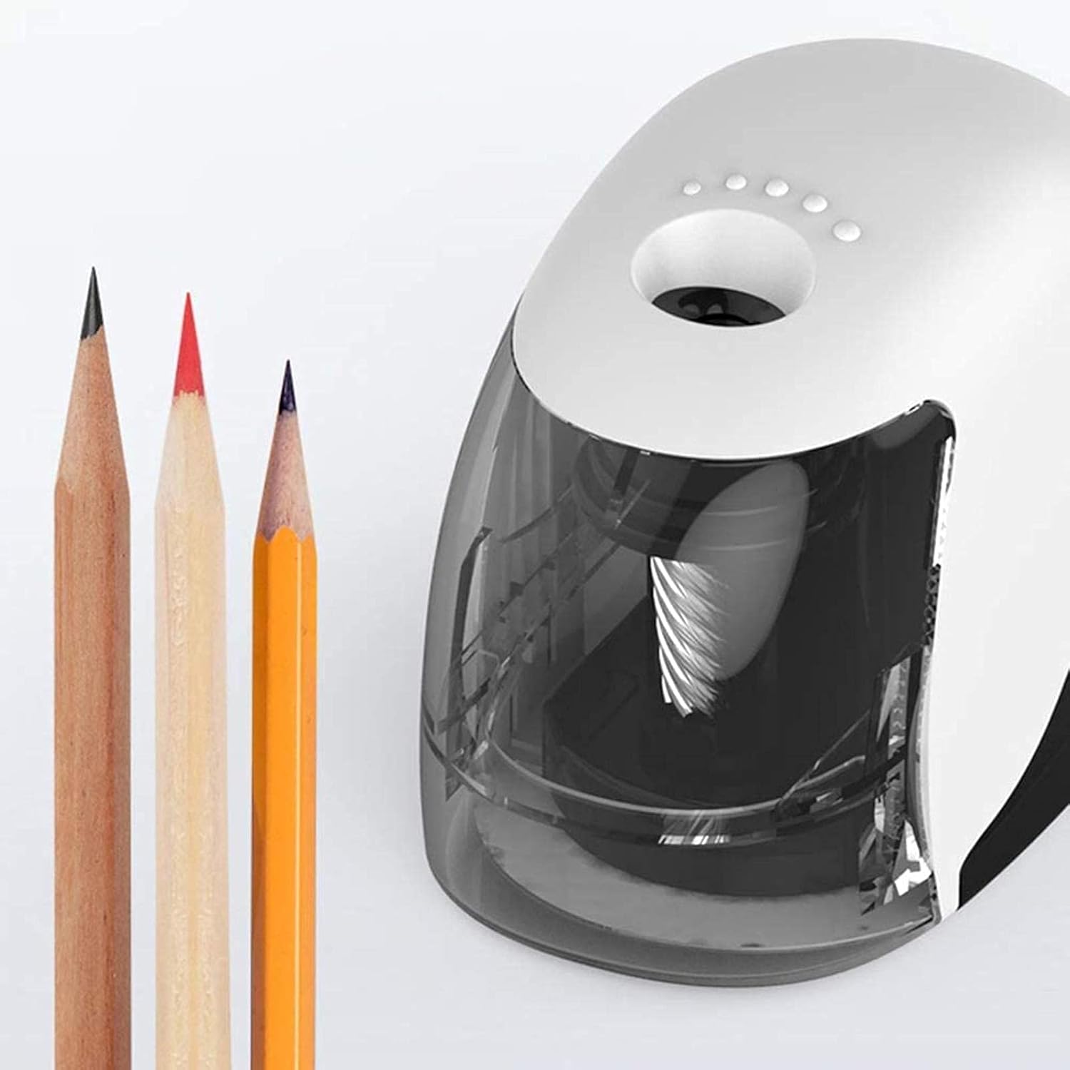 Lama potente: questo elegante temperamatite è dotato di una lama elicoidale in lega resistente che tempera matite da 6-8 mm di diametro in modo rapido e fluido fino a ottenere una punta fine. Funzione di sicurezza: il design di questo temperamatite include una funzione di sicurezza per la copertura protettiva: quando si apre la copertura per errore durante l'affilatura della matita, il coperchio si spegne.