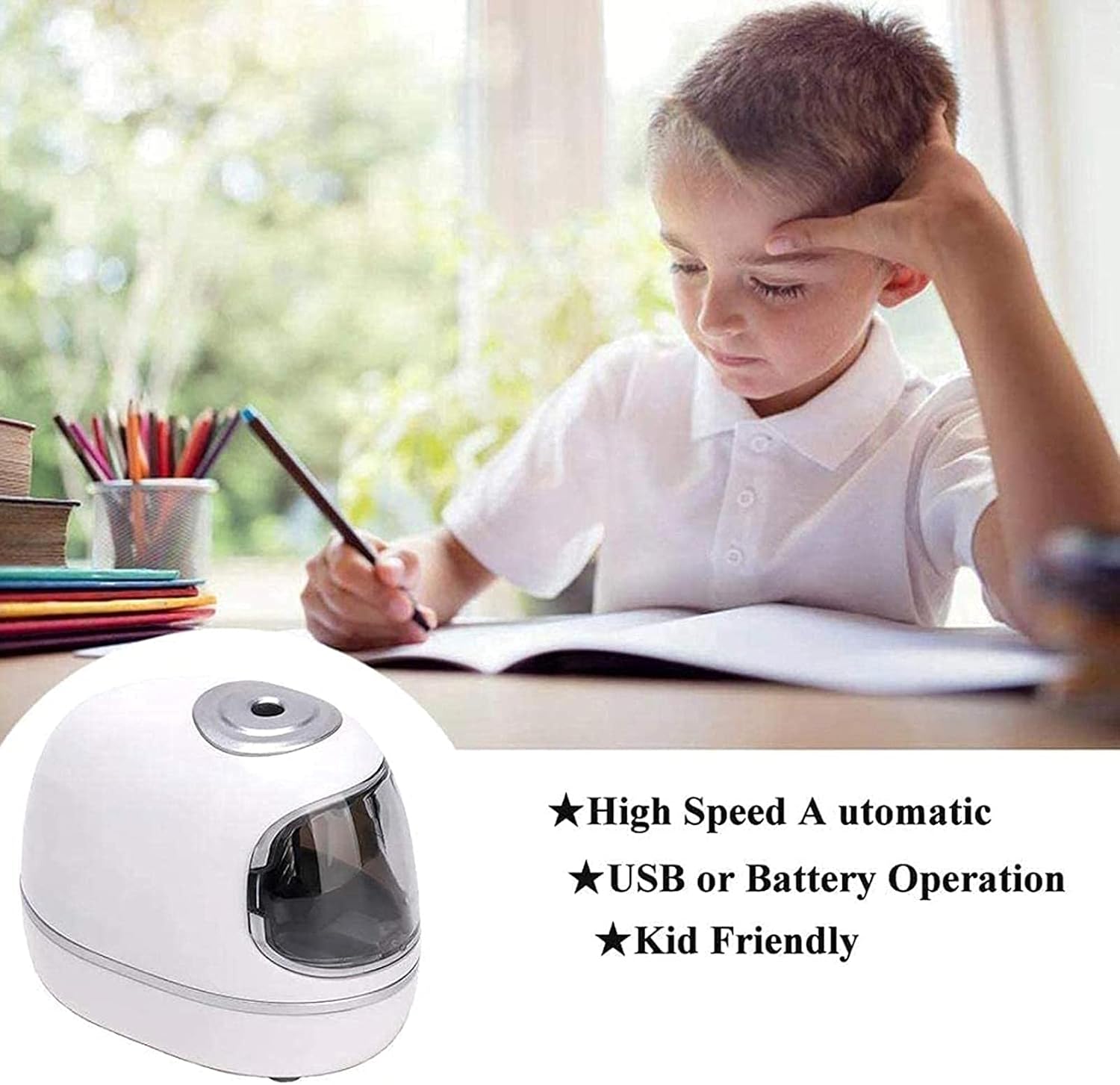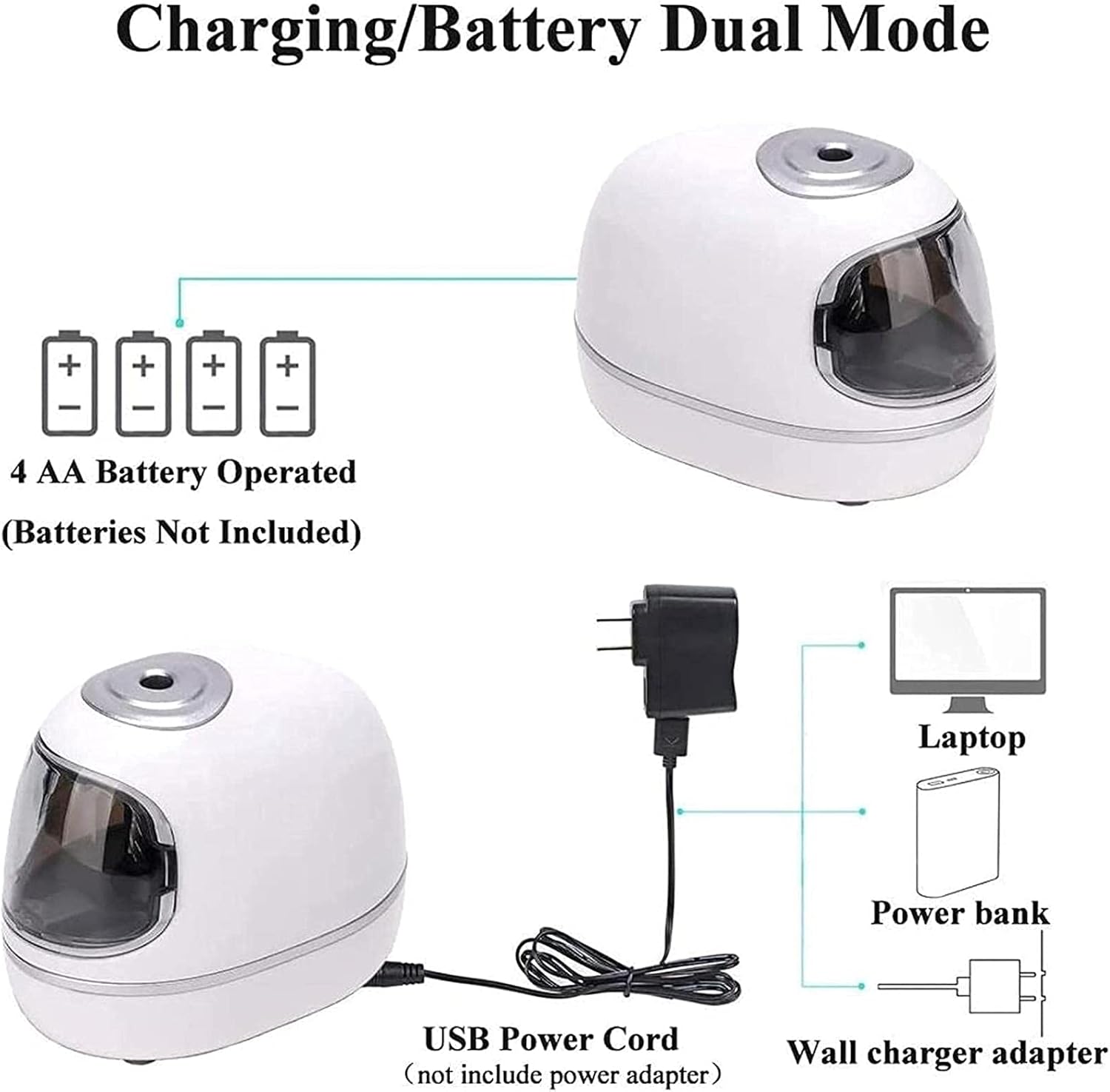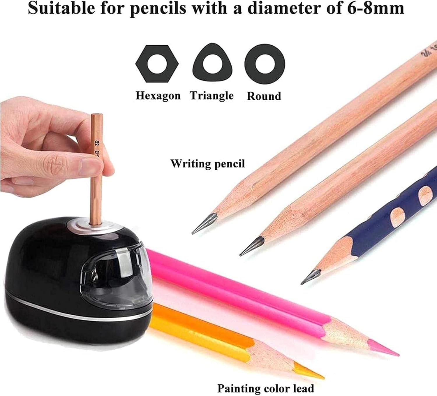 Motore potente: alimentato da 4 batterie AA (non incluse) o tramite cavo USB. Con il cavo USB, può essere collegato a una presa USB. Oppure collegalo semplicemente a una ciabatta con l'adattatore (adattatore non incluso). Flessibile e comodo da usare ovunque. Servizio: non esitare a contattarci quando hai un problema con il nostro temperamatite elettrico automatico e manuale, siamo qui e ti aspettiamo. Facile da usare e 3 impostazioni di affilatura: metti la penna