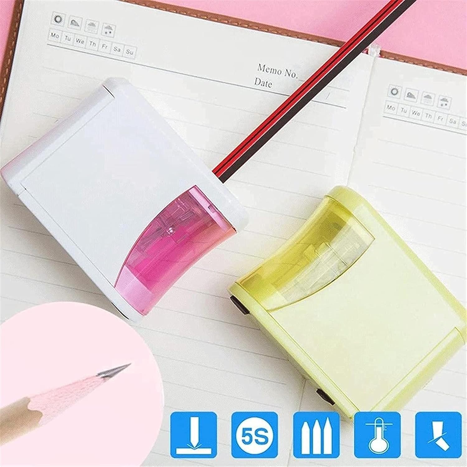 Il diametro del foro della matita è di 6-12 mm, adatto alla maggior parte delle matite. Penna elettrica intelligente, sicura e comoda. L'adozione di misure di protezione intelligenti può impedire l'apertura della macchina per penne per proteggere la sicurezza dei bambini. Il portacoltelli può essere sostituito liberamente per prolungare la durata del prodotto. Il design antiscivolo nella parte inferiore lo fa aderire perfettamente al banco da lavoro, rendendolo difficile da scivolare.
