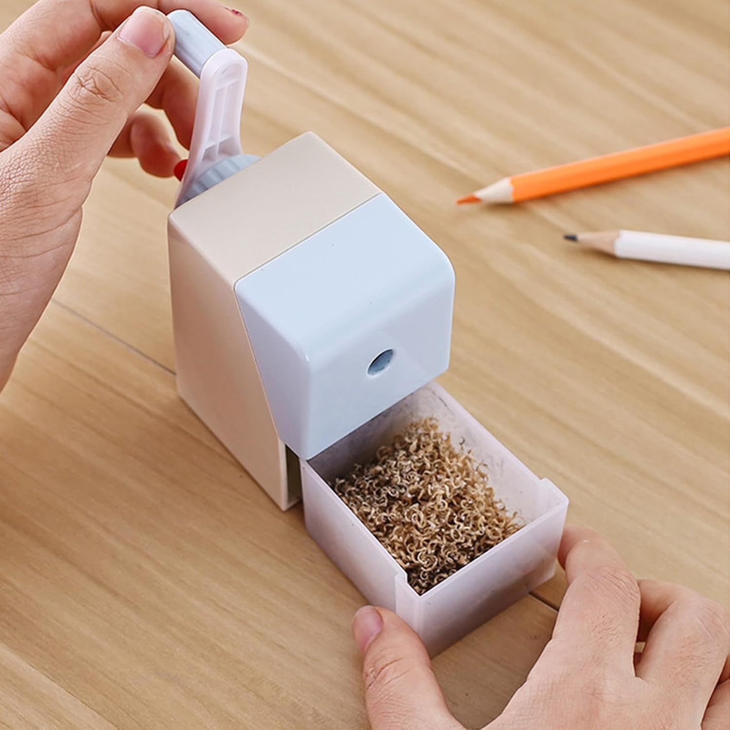 Semplice, efficiente, sicuro e affidabile. 2 ingranaggi di spessore regolabili, può essere facilmente affilato secondo le vostre esigenze. Fi Questo temperamatite per studenti è finemente artigianale, un design semplice e una funzione pratica, molto adatto per bambini, ragazzi, ragazze, studenti, insegnanti, pittori. Design aggiornato, alimentazione automatica. Dotato di meccanismo di affilatura in acciaio legato e grande contenitore shaprving, può affilare fino a più di mille volte. Semplice, efficiente, sicuro e affidabile. 2 ingranaggi di spessore regolabili, può essere facilmente affilato secondo le vostre esigenze. Adatto a varie matite in legno, matite colorate, matite da schizzo (diametro 7,3-8,5 mm). Disponibile per tutte le matite in legno, carboncini morbidi, carboncini duri, matite colorate, matite da trucco, matite da disegno e molto altro ancora.