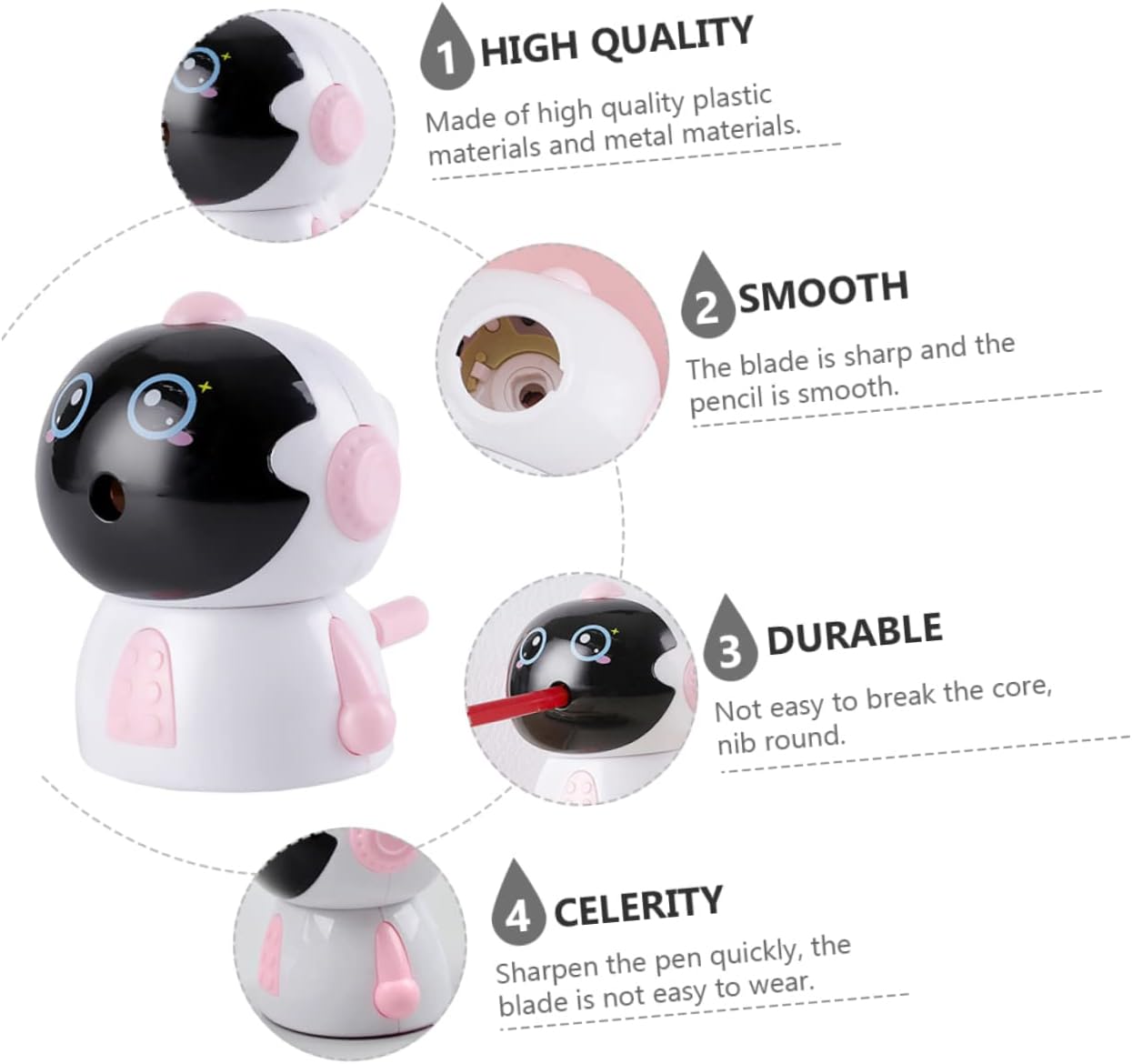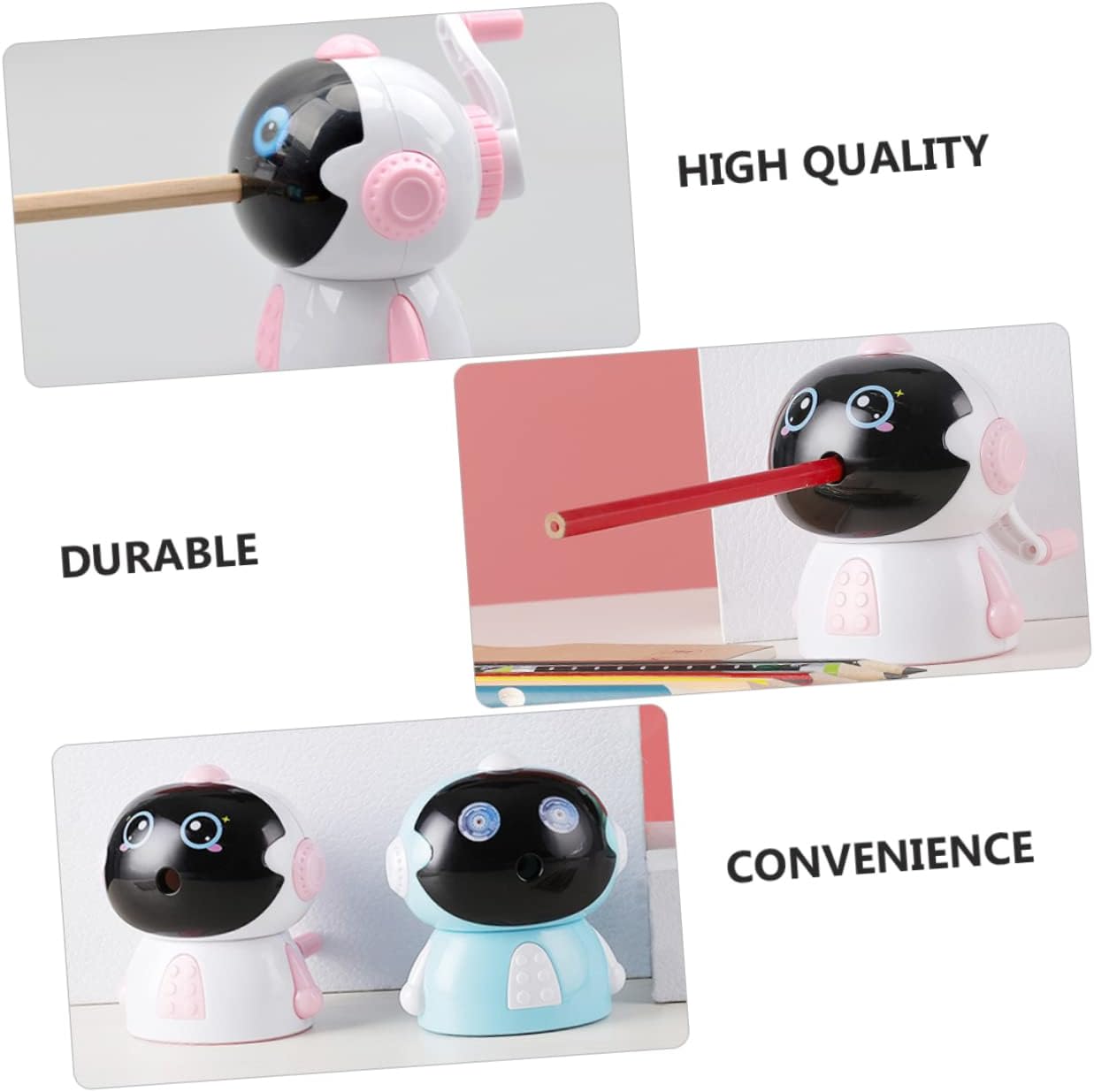 Divertente materiale per lo : un divertente e adorabile temperamatite per il materiale scolastico in classe. Matite colorate: il design della maniglia antiscivolo può garantire un facile utilizzo quando ruota la manovella. Matite colorate per bambini: design a fumetti, inizierai ad amare scrivere e disegnare. Matita meccanica in metallo: il suo design a forma di cartone animato, garantisce la sua popolarità tra i bambini. Strumento per matita per cancelleria: utilizzando materiale plastico e metallico resistente, il temperamatite con a.