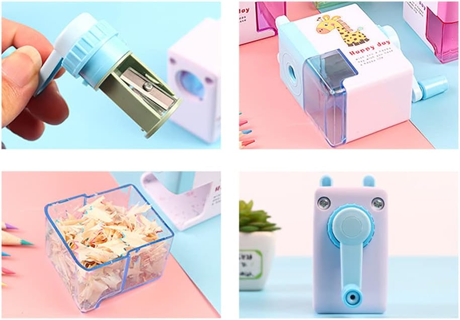 Dotato di metallo antiruggine e che può affilare fino a più di mille volte. Il guscio è inodore, sicuro e Brillante di piccole dimensioni e bei motivi. Bello e pratico. Eccellenti bambini, ragazze, ragazzi, studenti, bambini, adulti, artisti, designer e molto altro ancora. Ideale per ricompense di classe, forniture per feste, omaggi di attività all'aperto. Piccolo e dimensioni: circa 8 cm. Compatto e leggero, dimensioni adeguate per la borsa della scuola, zaino, molto adatto per studenti, insegnanti, artisti e personale d'ufficio. Design con cartoni animati. Bel design a cartoni animati, aspetto unico e colore brillante, che è sempre preferito dai bambini. Nessun cavo elettrico o battries richiesto, facile da usare. Sicuramente un grande il piccolo Ampio utilizzo. Disponibile per tutte le matite in legno, come 2b, carboncini morbidi, carboncini duri, matite colorate, matite da trucco e molto altro ancora. da pulire. Tutti i trucioli saranno catturati nella scatola da barba, facile da pulire.