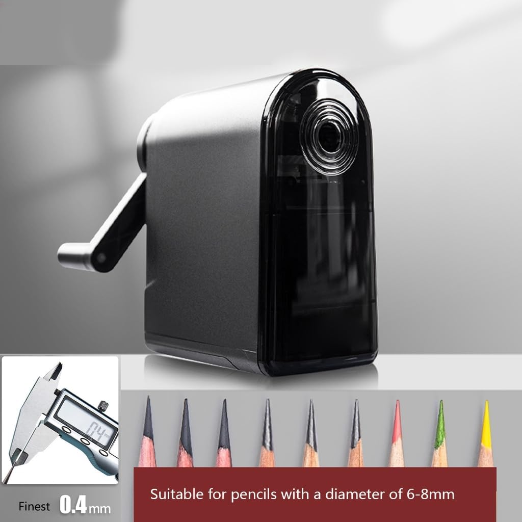 Disponibile per tutte le matite in legno, carboncini morbidi, carboncini duri, matite colorate, matite da trucco, matite da disegno e molto altro ancora. Semplice, efficiente, sicuro e affidabile. Spessore regolabile a 3 ingranaggi, può essere facilmente affilato secondo le tue esigenze. Adatto a varie matite in legno, matite colorate, matite da schizzo (diametro 6-8 mm). Questo temperamatite per studenti è finemente artigianale, un design semplice e una funzione pratica, molto adatto per bambini, ragazzi, ragazze, studenti, insegnanti, pittori. Regalo di festa per bambini, ragazze, ragazzi, studenti per compleanno, Natale, giorno del Ringraziamento, festa dei bambini. Ideale per ricompense di classe studentesca, riempitivi per calze natalizie. Design aggiornato, alimentazione automatica. Dotato di meccanismo di affilatura in acciaio legato e grande contenitore shaprving, può affilare fino a più di mille volte.