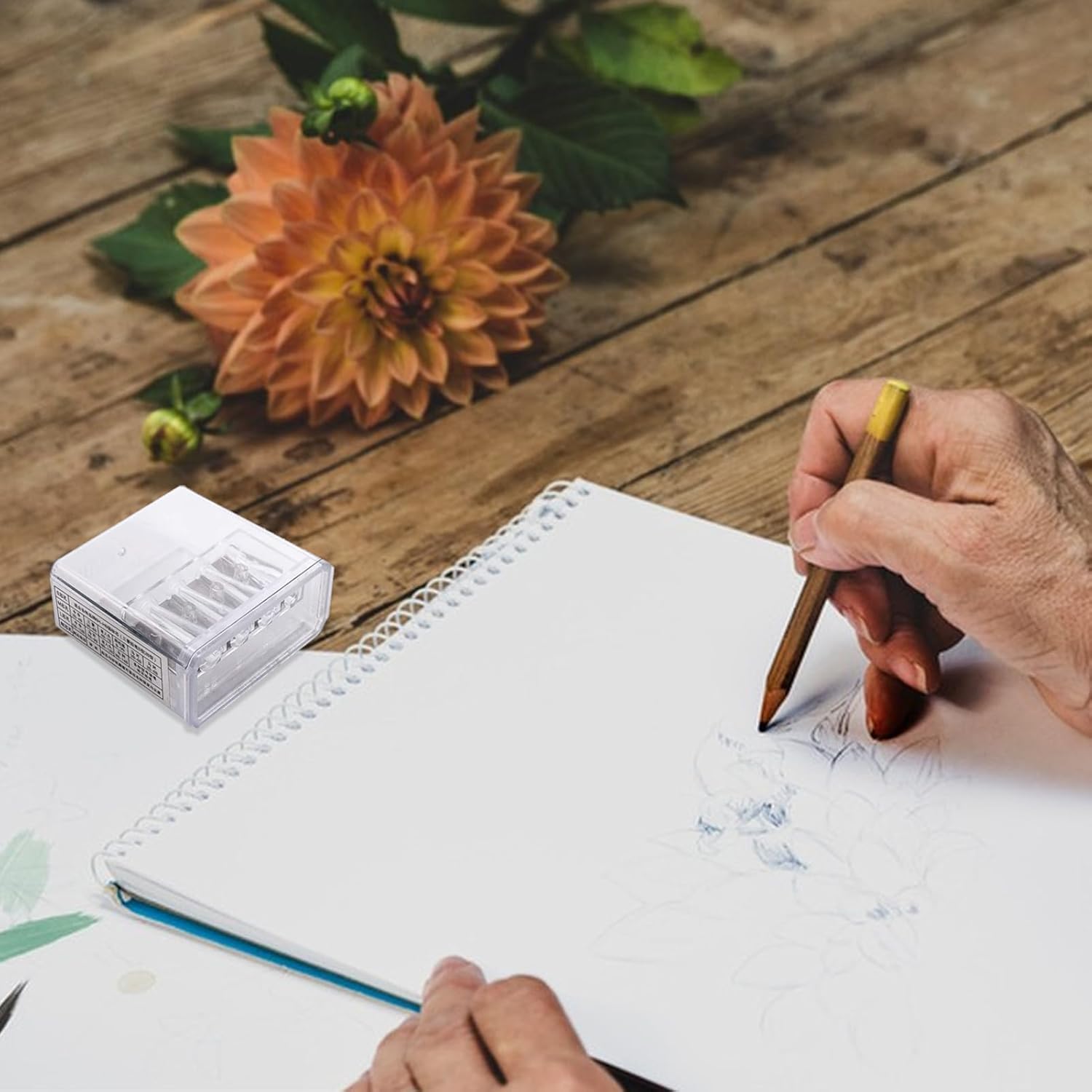 Design con coperchio trasparente: dotato di un design trasparente, questo temperamatite multifunzionale consente di vedere facilmente i contenuti, segnalando quando è necessario svuotarlo Funzioni abbondanti: questo temperamatite da carpentiere fornisce 4 fori di affilatura per ospitare matite standard e da carpentiere di diverse dimensioni. Goditi le opzioni di affilatura flessibili e adattabili per tutte le tue esigenze di affilatura Ideale per schizzi e disegni: migliora il tuo gioco di falegnameria con questo temperamatite Carpenter, caratterizzato da un design migliorato con precisione che crea senza sforzo punti lunghi e precisi. Ideale per schizzi e disegni, questo temperamatite garantisce linee precise e robuste, rivoluzionando i tuoi schizzi Comodo da trasportare: dotato di un design e leggero con dimensioni compatte, questo temperamatite da falegname è semplice da trasportare e riporre, rendendolo strumento indispensabile Facile applicazione: ottieni ogni volta un punto con questo temperamatite da falegname. Il suo design intuitivo significa semplicemente inserire la matita e ruotarla per affilarla senza problemi, semplificando i tuoi progetti di lavorazione del legno