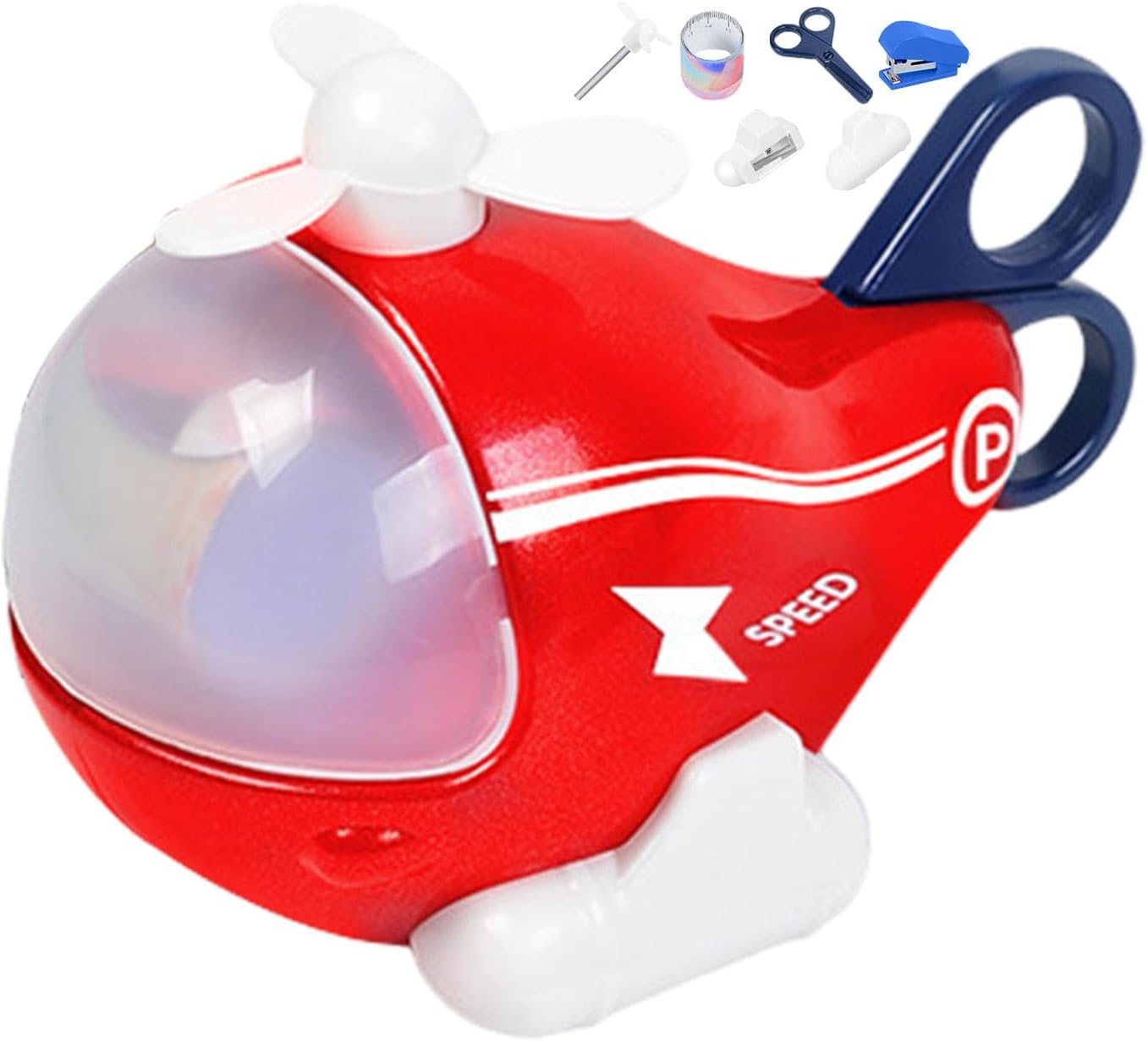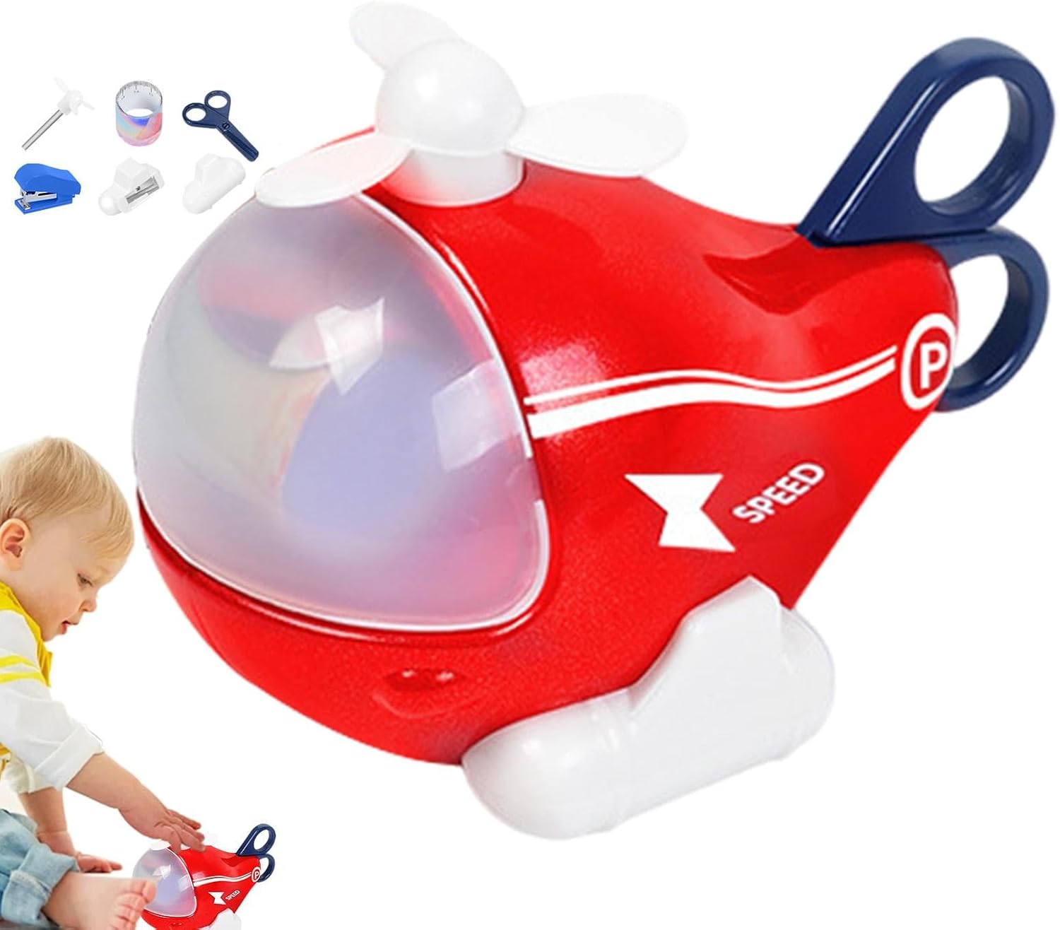 ☪6 funzioni: migliora l'apprendimento con la nostra cancelleria per aereo ; non è solo un giocattolo ma un set completo per la creatività, che include matita, righello, forbici, temperino, cucitrice e gomma, che favorisce la crescita in 6 aree educative chiave. ☪Materiale inodore: la nostra cancelleria per aereo è realizzata in materiale ABS di alta qualità, offrendo un'esperienza ecologica e sicura senza odori. La sua composizione anticaduta e resistente all'usura garantisce la durata. ☪Forma innovativa dell'aereo: progettato ingegnosamente, questo set di cancelleria per aereo si trasforma in un aeroplano, accendendo l'immaginazione e migliorando l'apprendimento attraverso il gioco. ☪Promuovi l'apprendimento in modo creativo: migliora le giovani menti con la nostra versatile cancelleria per aerei; un ibrido giocattolo-cancelleria che combina gioco e apprendimento, sfoggiando un accattivante design di un aeroplano da cartone animato che si trasforma facilmente in un esperto di apprendimento. ☪Regalo meraviglioso: migliora la loro creatività con la nostra cancelleria per aereo, un regalo inaspettato e delizioso per i bambini, perfetto per compleanni, vacanze e feste.