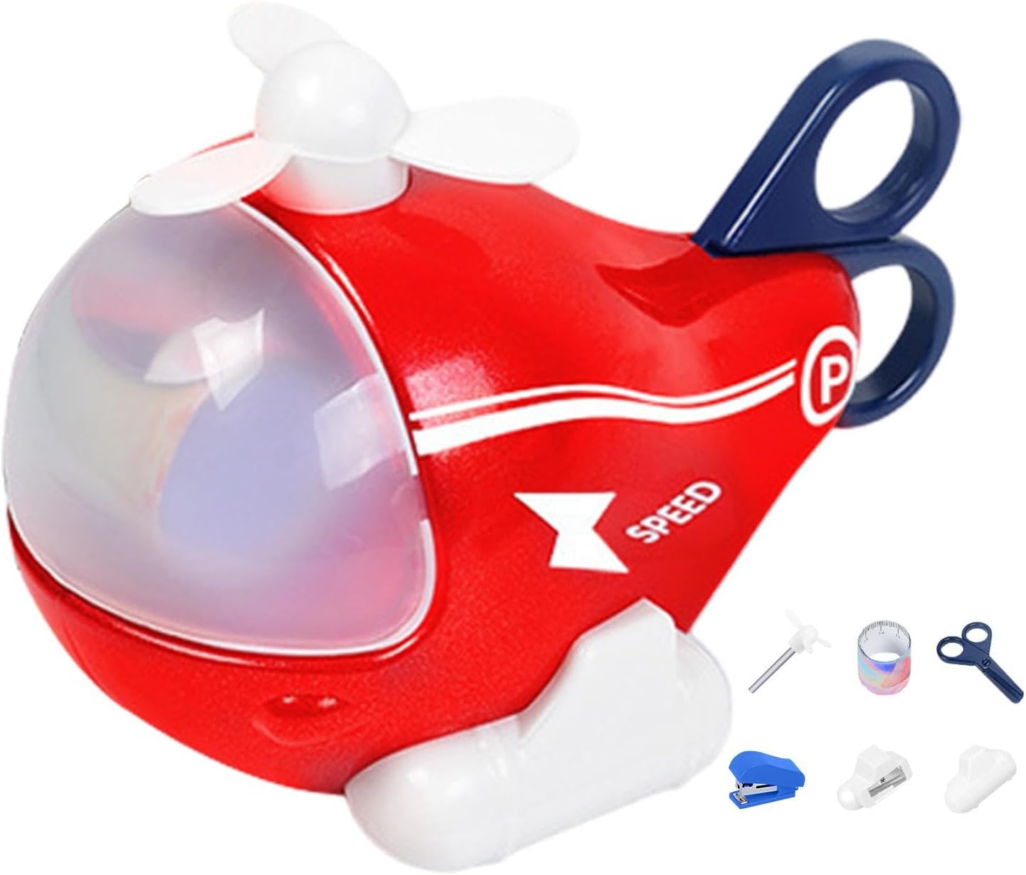 ❄Cancelleria : presentiamo la nostra cancelleria per aereo , che fornisce sia cancelleria che giocattoli in un unico pacchetto. Dotato di matita, anello per righello, forbici, temperino, cucitrice e gomma. ❄Materiale resistente all'usura: la nostra cancelleria per aereo è progettata con materiale ABS di alta qualità, garantendo un'esperienza inodore, ecologica, anticaduta e resistente all'usura. Realizzato per durare, garantisce sicurezza e durata per tutte le età. ❄Novità nella forma dell'aereo: incorporando 6 articoli di cancelleria in diverse parti dell'aereo, il nostro set di cancelleria a forma di aereo è strumento unico che intrattiene ed i bambini contemporaneamente. ❄Trasforma e insegna: affascina le giovani menti con la nostra cancelleria multifunzionale per aerei; un design 2 in 1 che unisce il gioco all'apprendimento, caratterizzato da un sorprendente aeroplano in stile cartone animato che si trasforma in strumento tivo. ❄Regalo commovente: equipaggia i bambini con la nostra cancelleria per aereo per un'esperienza creativa. Adatto per compleanni, vacanze, feste e qualsiasi giorno che abbia bisogno di un pizzico di meraviglia, perfetto per liberare più fantasia e gioia.