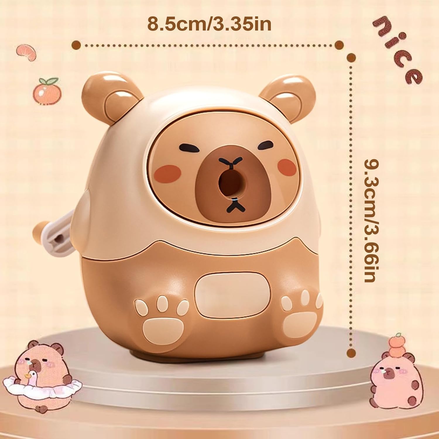 1. Affilatura Efficiente: Questo temperamatite per bambini ha un tagliente in lega resistente rimovibile per pulizia o sostituzione semplici. Affila efficacemente matite da 6-8mm grazie al caricamento automatico che migliora la praticità d'uso, assicurando una punta perfetta ogni volta. Fissaggio Ottimale: I gommini integrati bloccano scivolamenti garantendo esperienza d'uso , stabilità costante e sicurezza assoluta durante l'affilatura senza rischio di ribaltamento Manutenzione semplice: Il design antiversamento sicuro e il cassetto capiente per i trucioli rendono la pulizia di questo temperamatite veloce e pratica, permettendo ai bambini di mantenere l'area ordinata senza Materiale resistente: Grazie alla composizione in ABS, questo temperamatite assicura una lunga durata con proprietà antiurto e robustezza, fornendo strumento solido per le esigenze quotidiane di temperatura delle matite dei bambini Design coinvolgente per studenti: La forma giocosa a carpincho di questo affilamatite lo rende per chi vuole unire praticità e creatività, aggiungendo un tocco di allegria alla routine di studio