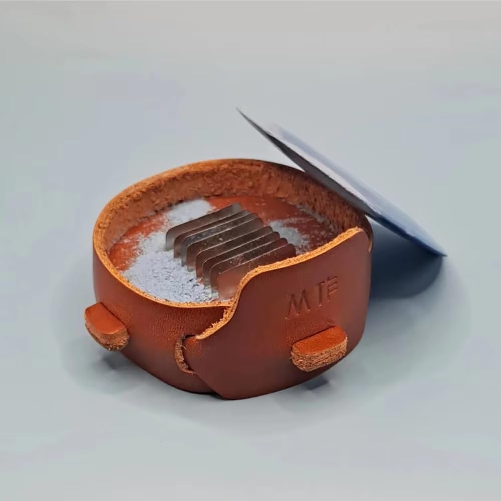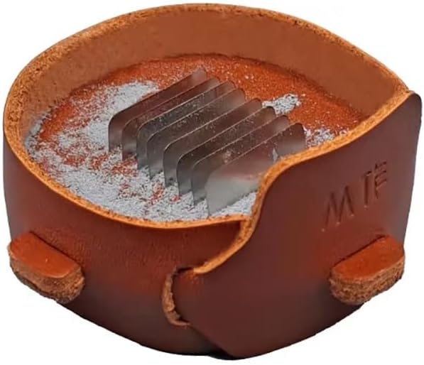 Questo temperamatite professionale è uno strumento essenziale per sarti, stilisti e appassionati di cucito. Realizzato in pregiata pelle pieno fiore conciata al vegetale e con una lama in acciaio inossidabile di alta qualità, è progettato per garantire durata e stile. Il design compatto è dotato di una camera integrata che raccoglie ordinatamente i trucioli di gesso, mantenendo pulito l'ambiente di lavoro. Il design esclusivo della lama applica una pressione uniforme sul gesso, consentendo di raderlo rapidamente fino a ottenere un bordo perfetto e sottile, senza romperlo. Questo assicura una linea di marcatura pulita e precisa ogni volta. Le sue dimensioni compatte lo rendono facile da trasportare nel tuo kit da cucito.