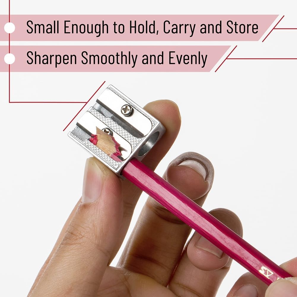 Pratico temperamatite a 2 fori, per affilare matite standard e jumbo Temperamatite in metallo di alta qualità Perfetto per l'uso in scuole, uffici, case, progetti artistici, ecc. Per matite normali o colorate Il metallo affilato di alta qualità affila delicatamente matite, pastelli, evidenziatori biblici, ecc. in acciaio affilata e di lunga durata