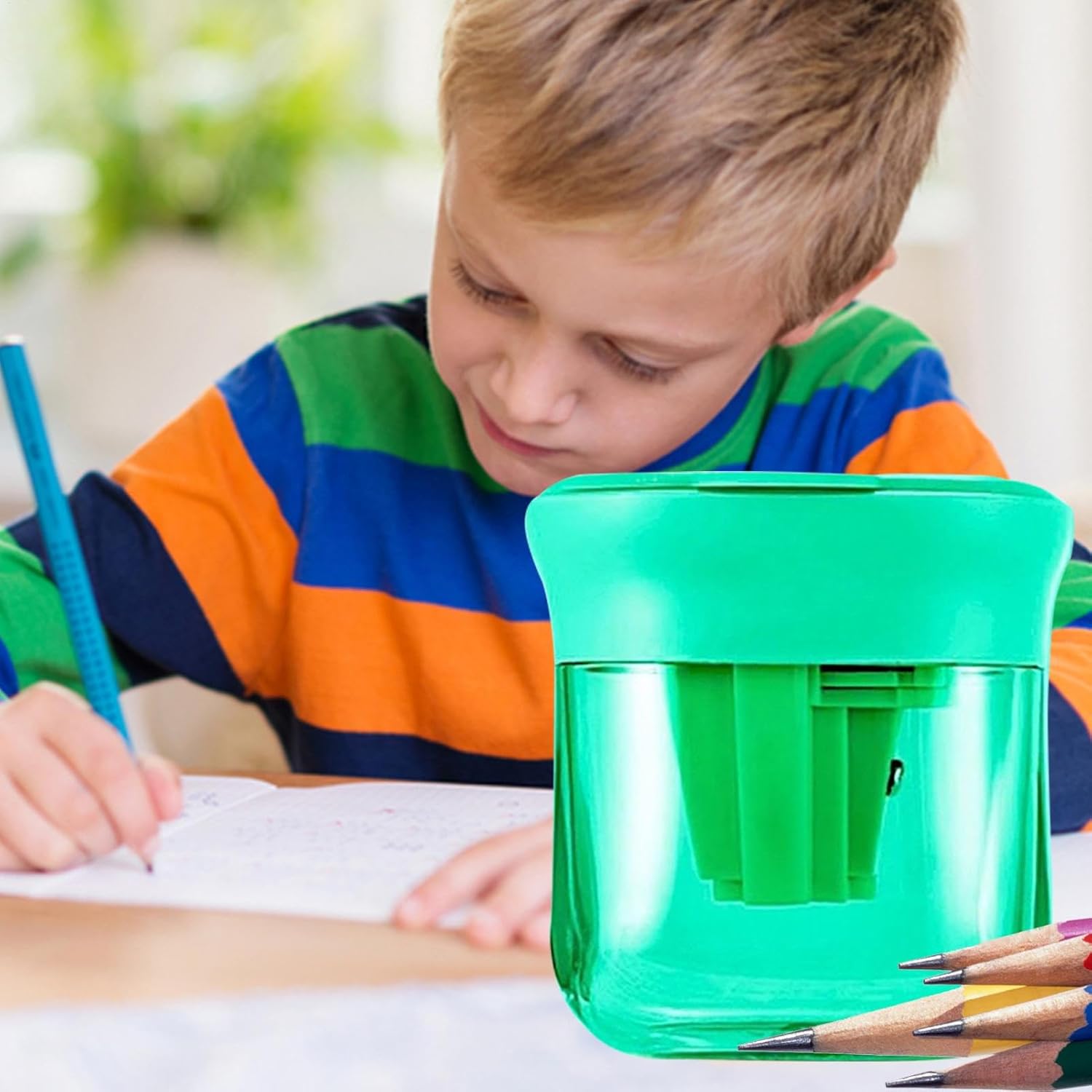 Soluzione Efficiente e Ordinata:Dotato di coperchio anti-polvere che contiene i trucioli e preserva l'ordine, unisce un design compatto e colorato a una forma manuale per un uso quotidiano intuitivo e senza disordine Design Robusto e Resistente: Progettato con materiali ABS ad alta resistenza e una lama in acciaio alto carbonio, offre prestazioni di affilatura affidabili mantenendo il filo della lama anche dopo ripetuti utilizzi grazie alla costruzione Soluzione Adattabile a Tre Fori: Un design di precisione a tre fori accoglie matite meccaniche fini e matite colorate a canna spessa, soddisfando le diverse esigenze di affilatura in modo efficiente senza richiedere agli utenti di cambiare ripetutamente attrezzi per diversi tipi di matite e necessità Strumento Adattabile:per matite colorate, da disegno, da scrittura e tecniche, risponde alle necessità di utenti di tutte le età e fornisce soluzioni di affilatura versatili per attività creative e lavori accademici quotidiani Funzionamento Senza : Meccanismo ottimizzato per una rotazione regolare e una affilatura effortless, grazie alla lama rinforzata ad alta durezza che migliora l'efficienza operativa e l'esperienza utente complessiva