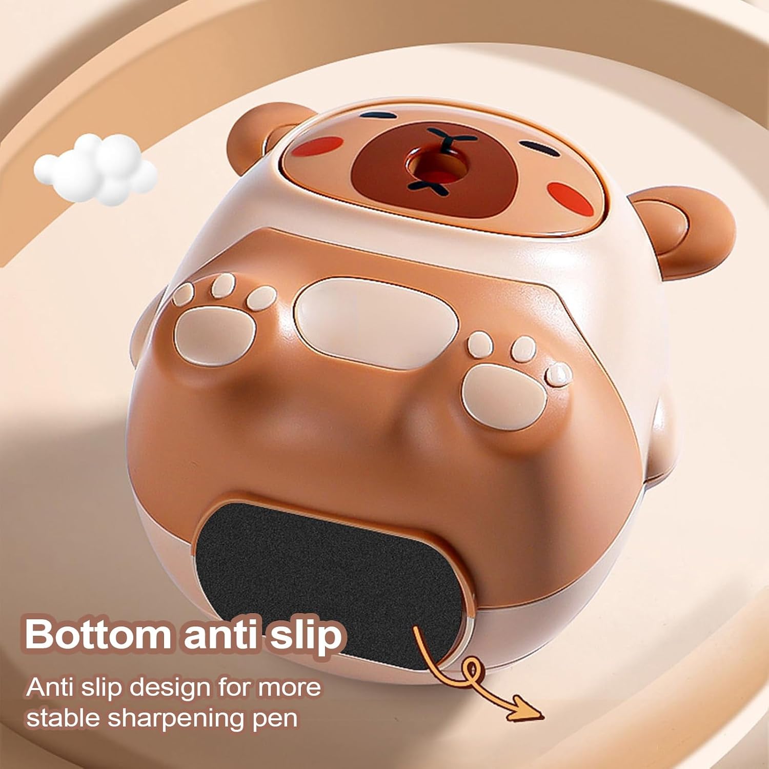 3. Tagliente Rimovibile: Progettato per i bambini, questo affilamatite gestisce matite da 6-8mm senza sforzo grazie alla funzione di caricamento automatico che riduce l'affaticamento delle mani. Il tagliente in lega rimovibile assicura prestazioni di affilatura costanti e un'ottima durata nel . Sicurezza e Stabilità: Base con gommini morbidi antiscivolo garantisce ottimale su qualsiasi superficie, permettendo ai bambini di affilare matite in totale sicurezza senza spostamenti accidentali durante l'uso Pulizia senza disordine: Con la funzione antiversamento e un cassetto capiente per raccogliere i trucioli, questo temperamatite rende la pulizia facile e riduce il disordine, una soluzione pratica per le esigenze dei bambini Progettato per durare: Utilizzando materiale ABS, questo temperamatite è ideato per un uso prolungato, con struttura robusta e resistente agli urti per soddisfare le esigenze di temperatura frequente Design coinvolgente per studenti: La forma giocosa a carpincho di questo affilamatite lo rende per chi vuole unire praticità e creatività, aggiungendo un tocco di allegria alla routine di studio