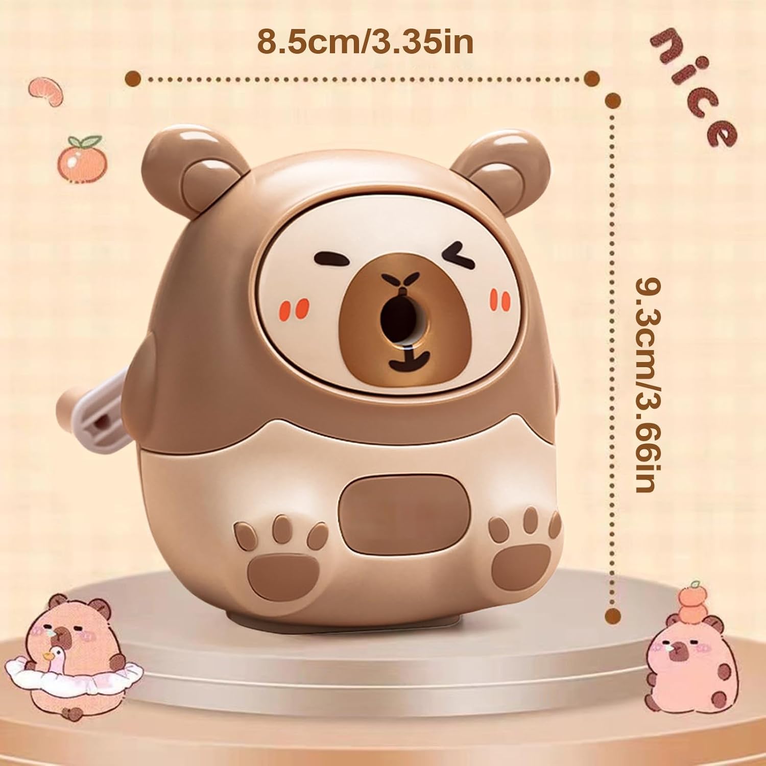 4. Caricamento Automatico: La funzione auto-feed gestisce con facilità matite da 6-8mm, minimizzando lo sforzo durante l'uso. Il tagliente in lega rimovibile garantisce un'affilatura efficace per una lunga durata del temperamatite, ideale per un utilizzo quotidiano. Stabilità Migliorata: I gommini morbidi sul fondo assicurano funzionamento fluido e stabile, offrendo massima sicurezza durante l'affilatura per una presa comoda e controllata Manutenzione semplice: Il design antiversamento sicuro e il cassetto capiente per i trucioli rendono la pulizia di questo temperamatite veloce e pratica, permettendo ai bambini di mantenere l'area ordinata senza Progettato per durare: Utilizzando materiale ABS, questo temperamatite è ideato per un uso prolungato, con struttura robusta e resistente agli urti per soddisfare le esigenze di temperatura frequente Strumento divertente e pratico: Con il suo adorabile design a carpincho, questo affilamatite rende lo studio e il lavoro più allegri e creativi, per gli studenti che amano un tocco di originalità