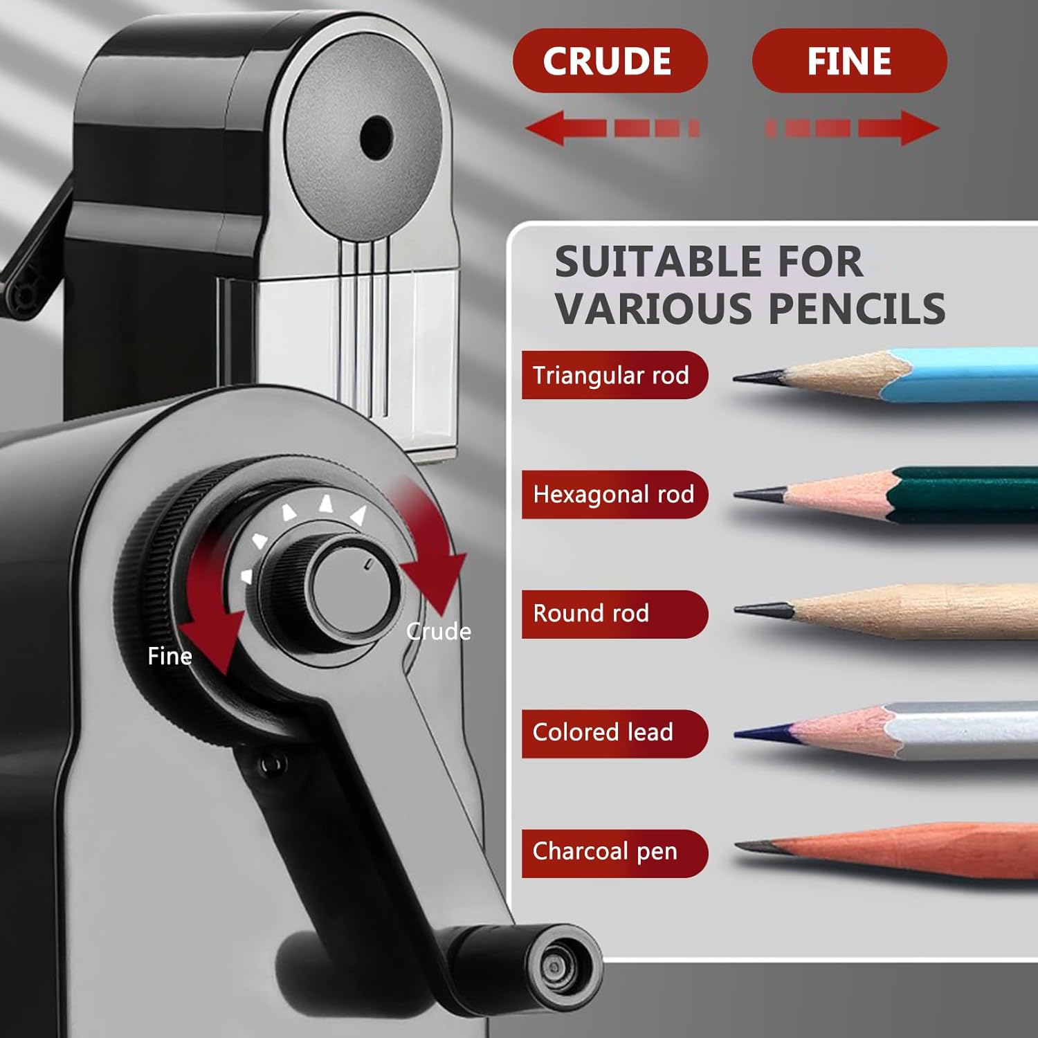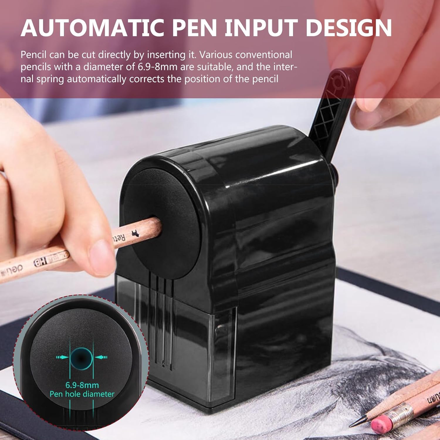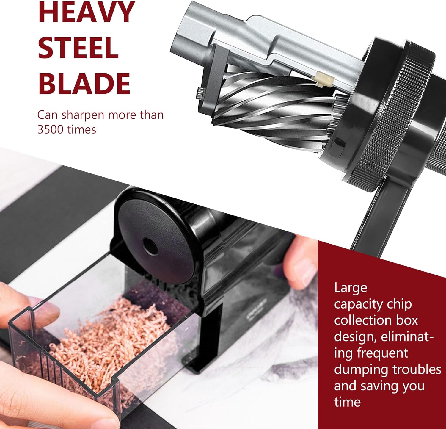 Temperamatite con alimentazione automatica delle matite, esclusione automatica dei nuclei rotti, regolazione dello spessore della miniera, grande capacità del vassoio per trucioli