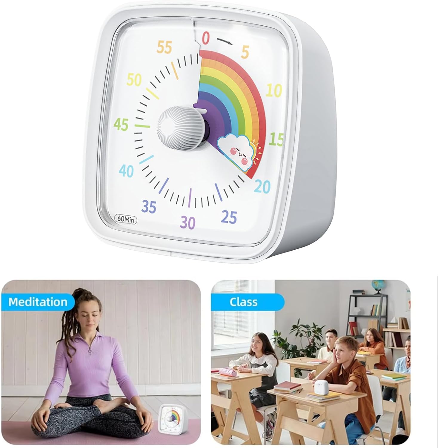 Questo piccolo timer elettronico presenta quadranti arcobaleno colorati che diminuiscono visivamente nel tempo, rendendolo attraente ed educativo per la gestione del tempo per i bambini. Questi timer, realizzati in plastica, si impostano facilmente ruotando semplicemente i quadranti in senso orario, consentendo agli utenti di cogliere gli intervalli di tempo in modo intuitivo. Parole chiave Temporizzatori elettronici, Gestione del tempo, Silenzioso Ideale per i bambini Progettato con un approccio giocoso ma funzionale. Questi timer funzionano in modo silenzioso, eliminano le distrazioni e offrono tre tipi di allarme: silenzioso, basso o forte. Perfetto per varie situazioni come cucinare in cucina, riunioni di studio, allenamento fisico, promemoria di riunioni e gestione complessiva del tempo quotidiano.