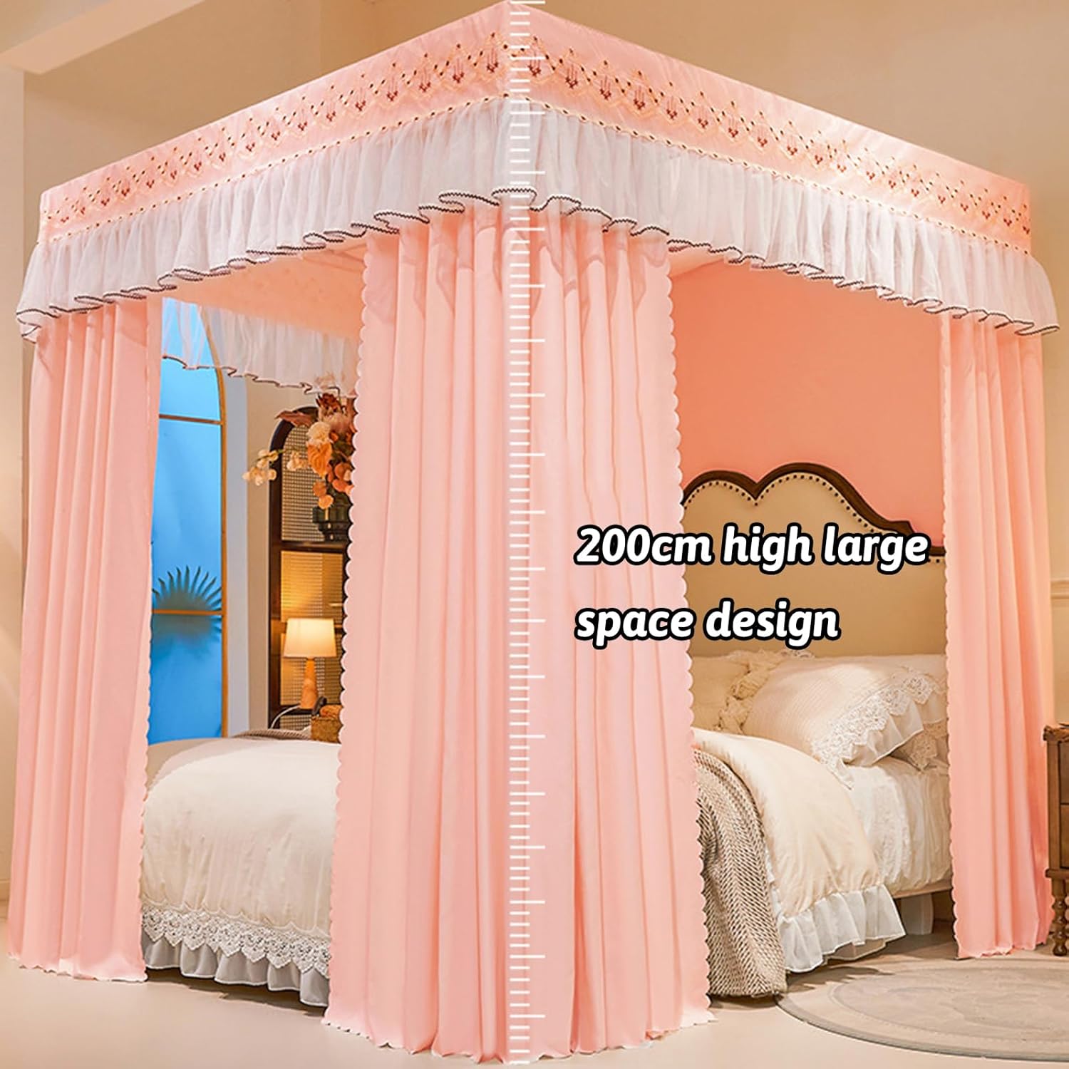 Design completo a 360°: avvolge il letto da ogni angolazione, offrendo un'area appartata e allontanando efficacemente le zanzare per un sonno tranquillo. - Tenda scorrevole facile da usare: le tende del letto migliorano l'estetica della camera da letto consentendone l'apertura e la chiusura senza sforzo, rendendone l'uso quotidiano semplice e piacevole. - Interni spaziosi senza limitazioni: offre una protezione completa, garantendo al contempo una zona notte spaziosa e confortevole per muoversi liberamente e rilassarsi. - Tessuto oscurante migliorato: le tende del letto a baldacchino bloccano efficacemente la luce, favorendo un ambiente sereno e delicatamente illuminato per dormire. - Robusto telaio in ferro battuto verniciato: progettato per resistere alla flessione, fornisce un supporto stabile e affidabile per l'intera tenda del letto e la zanzariera, garantendo l'integrità strutturale complessiva.