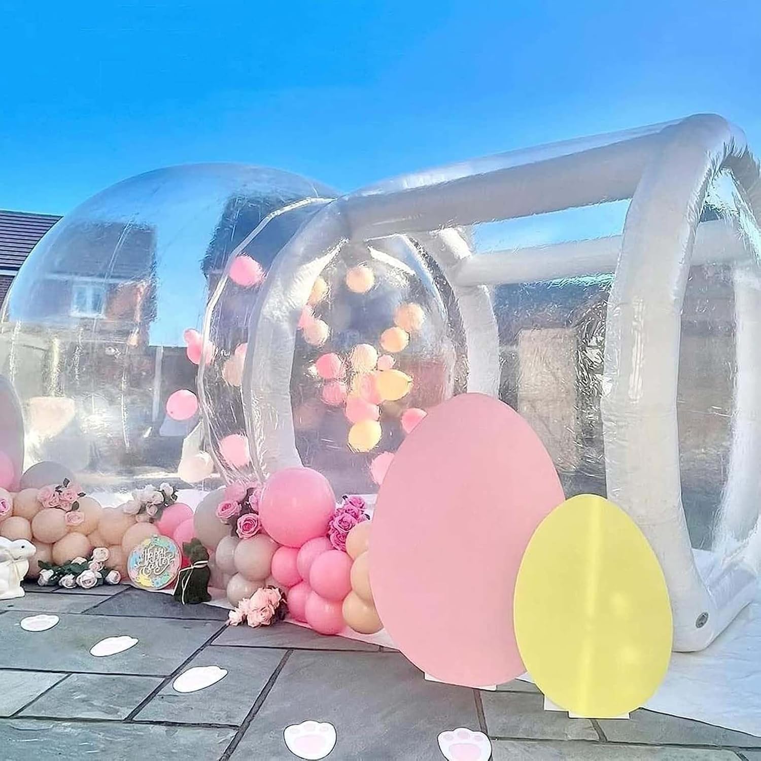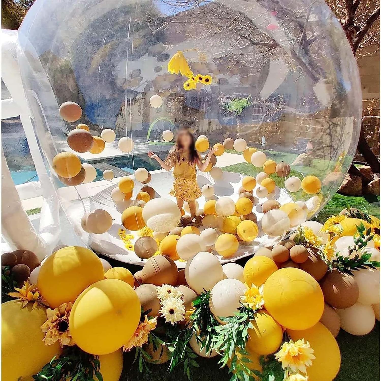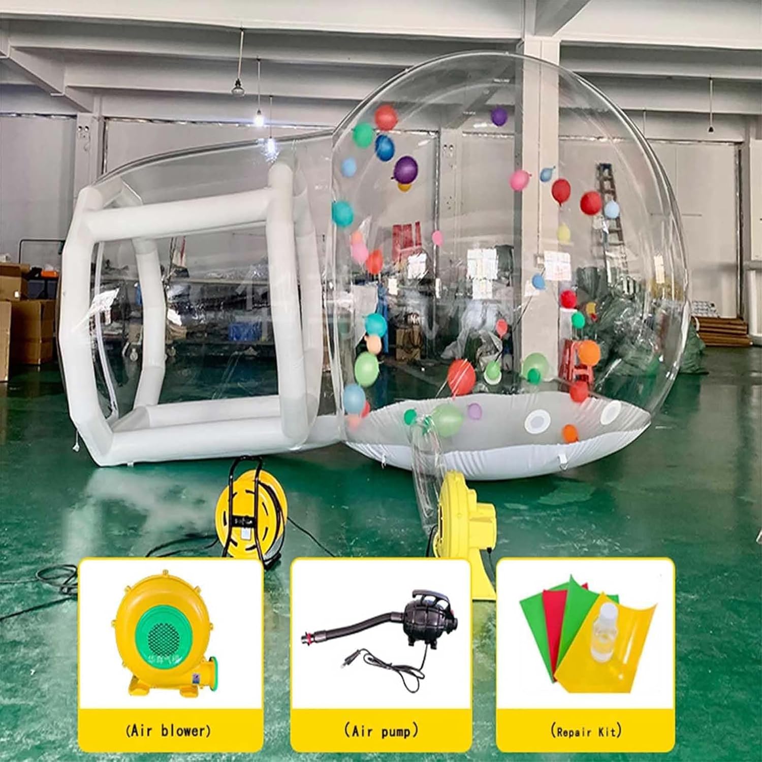 [Casa a bolle con lucernario panoramico a 360°] Il design di questa casa a bolle gonfiabile è davvero unico, offre una vista a 360 gradi del cielo azzurro durante il giorno e del bellissimo cielo stellato di notte. Il prodotto è trasparente quando completamente distribuito e non si sbiadisce né si sgualcisce. [Dream Winter Bubble House] Combinazione di case a bolle gonfiabili per bambini e adulti per giocare e scattare foto insieme. Decora la casa delle bolle con i LED di notte, sarà più fantastico. Sarà ancora meglio in una giornata nevosa in inverno. Ideale per occasioni di lavoro, matrimoni, compleanni e altre feste. [Bolle e soffiatori impermeabili] Questa tenda a bolle è realizzata in PVC trasparente di alta qualità spesso 0,8 mm, resistente, alla moda e innovativo. Con la ventola da 680 W, il materiale ABS di alta qualità, resistente alle cadute, durevole, può gonfiare ulteriormente il castello gonfiabile. [Facile da gonfiare e sgonfiare] La casa delle bolle gonfiabile è dotata di un ventilatore d'aria da 680 W e di una pompa d'aria elettrica da 600 W. Non è richiesto alcun assemblaggio complicato, la grande ventola viene utilizzata per gonfiare continuamente la casa delle bolle e la piccola pompa ad aria viene utilizzata per gonfiare le colonne bianche, il tutto può essere completato in tre minuti. [Soddisfazione garantita] Se non sei soddisfatto al 100% dei nostri prodotti o non sei soddisfatto dei nostri prodotti, contatta immediatamente il nostro servizio clienti.