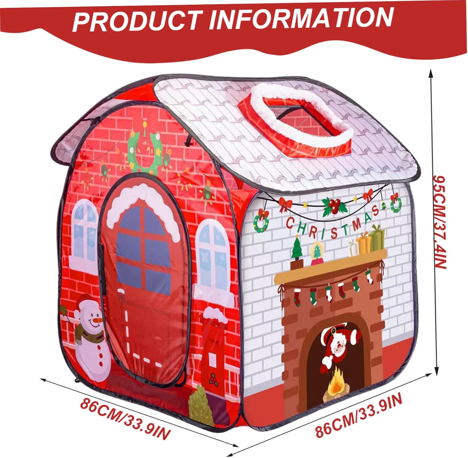 Facile installazione e pulizia: il montaggio rapido con un semplice design pop-up consente a genitori e bambini di installare la tenda da gioco senza sforzo, mentre i materiali leggeri facilitano la pulizia e lo stoccaggio senza problemi dopo le celebrazioni festive Casetta da gioco spaziosa e portatile: progettata con ampio spazio interno per più bambini, include anche una comoda custodia per un facile trasporto e stoccaggio, rendendola ideale sia per l'uso domestico che per i viaggi di vacanza Materiali stabili e sicuri: realizzata in tessuto poliestere atossico di qualità con struttura robusta del telaio, la tenda garantisce un uso duraturo e un ambiente sicuro in cui i bambini possono godersi ore di gioco fantasioso Design natalizio festivo: caratterizzata da un affascinante motivo a tema natalizio con un cappello e una calza giocosi, questa tenda da casa per bambini crea un'atmosfera gioiosa e vacanziera, perfetta per feste di Natale al chiuso e giochi festivi Caratteristiche interattive per le vacanze: la tenda incorpora elementi accattivanti come la calza e il cappello decorativo per migliorare il divertimento durante le vacanze e stimolare la creatività, fornendo un'esperienza di gioco coinvolgente che incoraggia l'interazione sociale e la gioia festosa