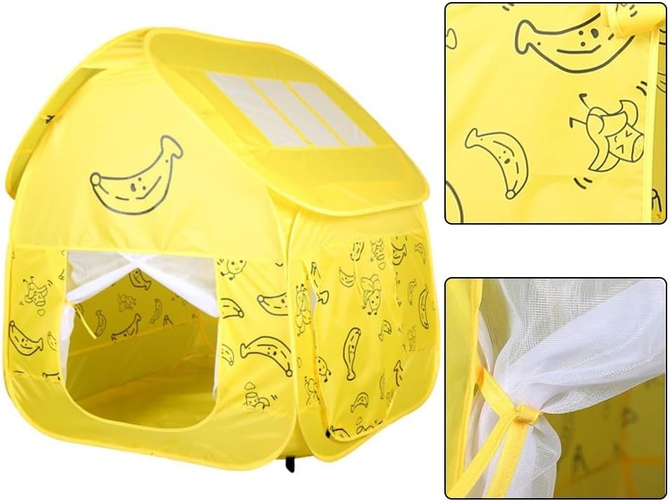 Stampe vivaci a banana: i disegni accattivanti a banana aggiungono fascino a questa tenda da gioco, catturando l'attenzione dei bambini e incoraggiando esperienze di gioco fantasiose. Tende a rete regolabili: le tende a rete integrate possono essere aperte o chiuse secondo necessità, creando una zona priva di insetti consentendo alla luce e all'aria di entrare nella tenda. Montaggio rapido e semplice: progettato con pulsanti rimovibili per una configurazione e rimozione senza problemi, perfetto per gite spontanee o uso interno. Tessuto traspirante e sicuro: realizzato in materiale a rete traspirante che garantisce comfort e sicurezza durante ore di gioco. [Usi multifunzionali] Ideale per ombreggiare nelle giornate di sole o servire come emozionante casetta per giochi al coperto, questa tenda offre ai bambini il loro spazio privato per infinite avventure.