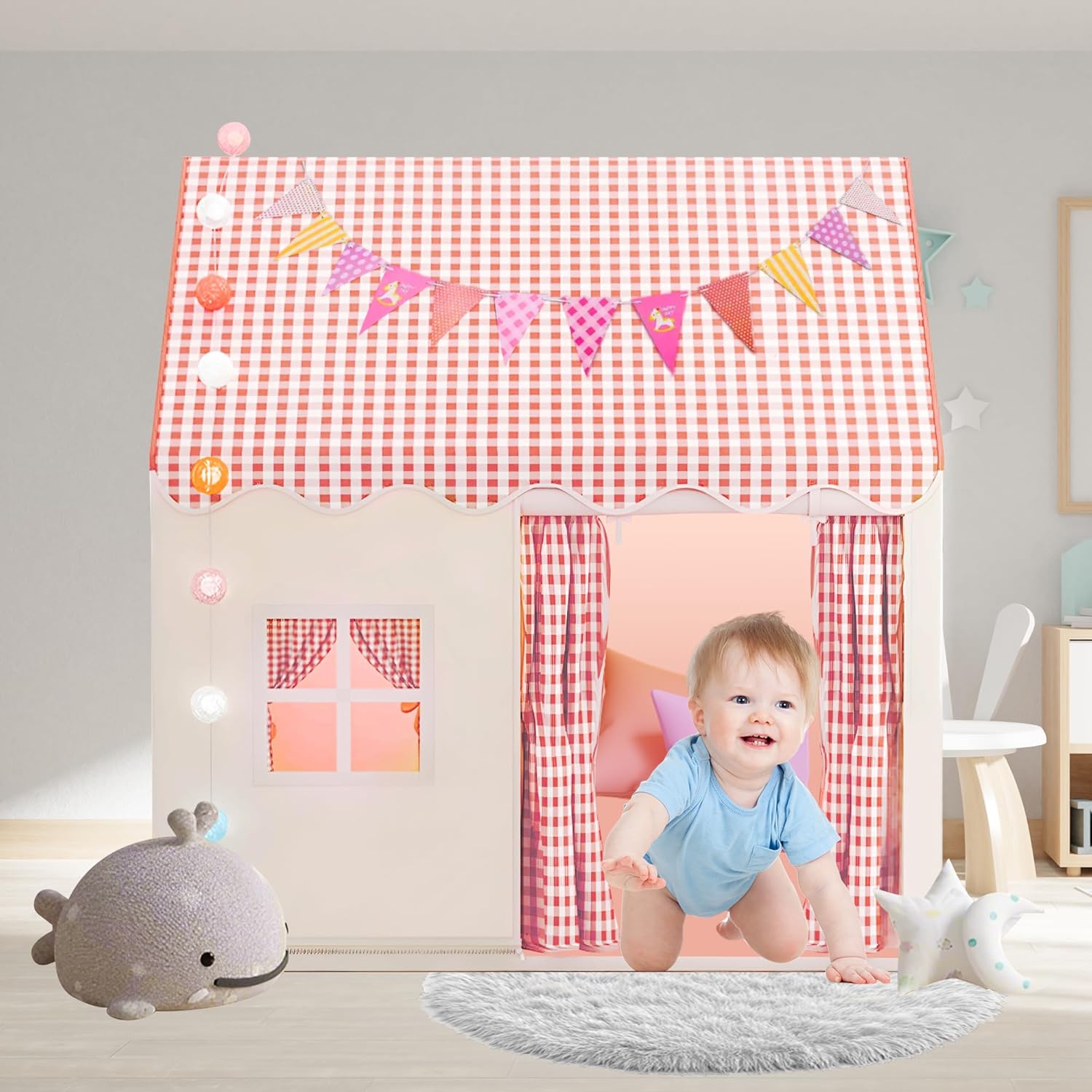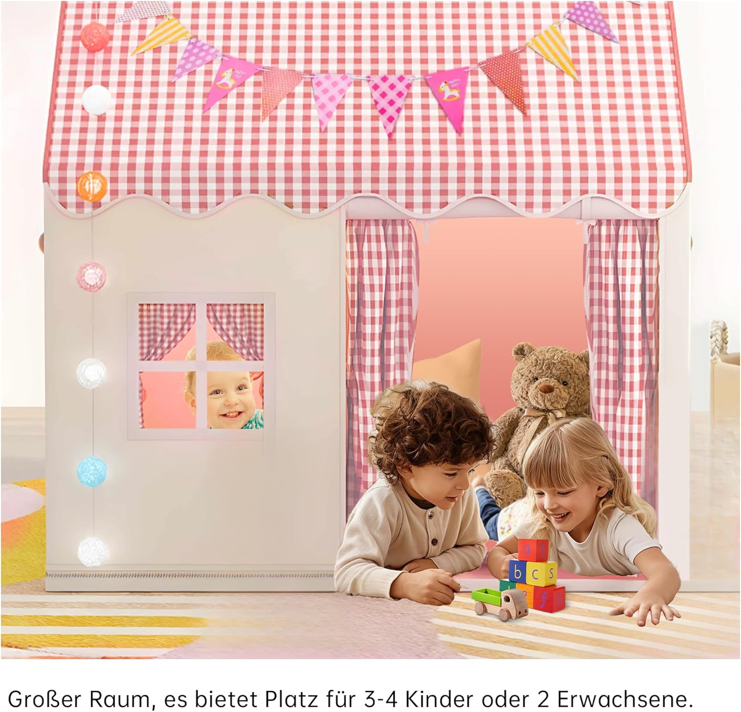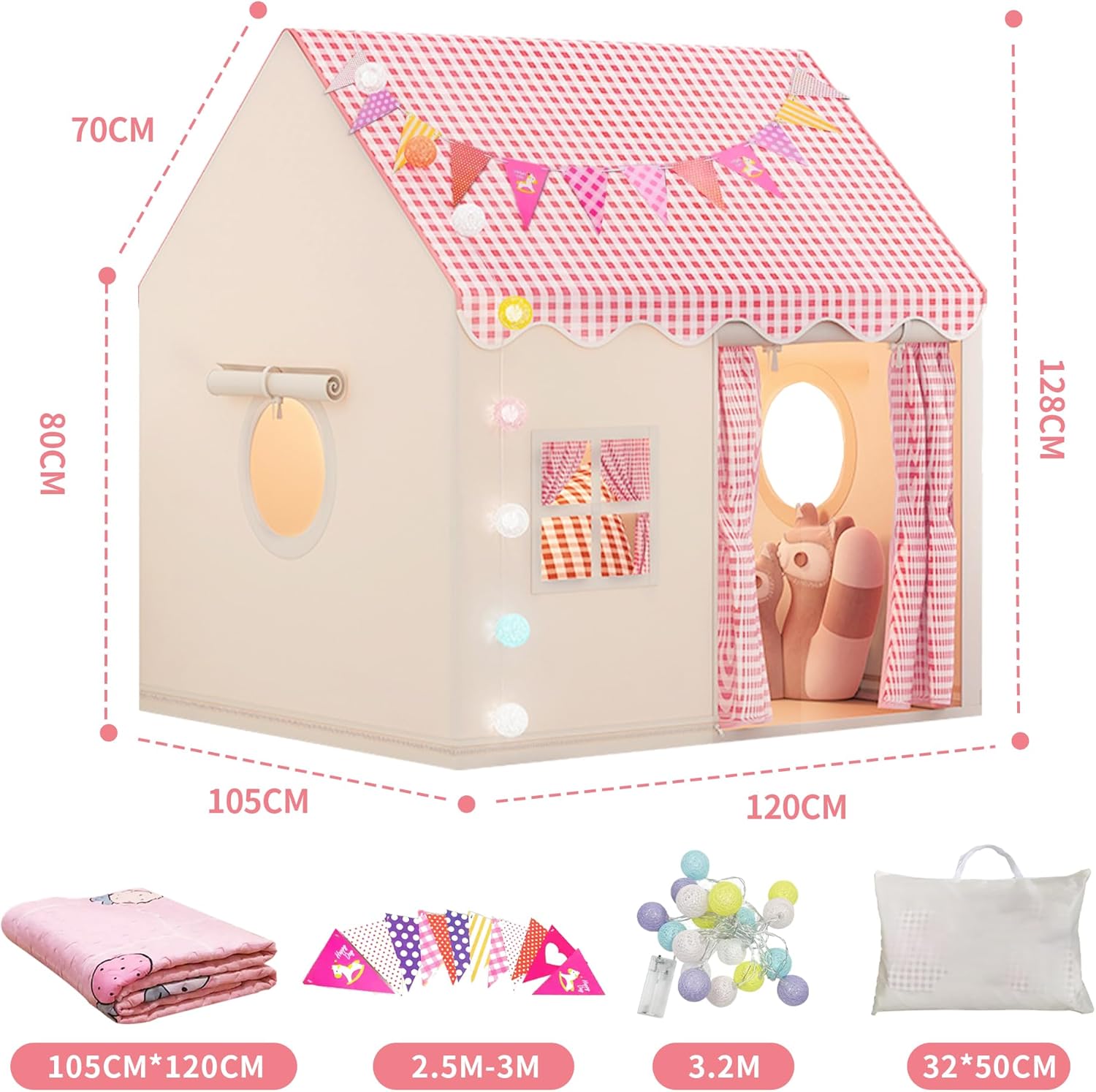 Ampia casetta: questa casetta per bambini misura 120 cm x 105 cm x 128 cm e offre spazio sufficiente per fino a 3-4 bambini o 1 adulto e 2 bambini. È l'angolo di gioco iedal per giochi di ruolo fantasiosi e avventure di storia Tenda da gioco adatta ai bambini: questa casetta per bambini è realizzata in tessuto di poliestere di alta qualità e telaio in metallo rinforzato, che garantisce una struttura stabile e affidabile per la sicurezza. Il tessuto è lavabile in lavatrice per una facile pulizia, riduce notevolmente lo sforzo di pulizia Facile da montare: la casetta per bambini può essere facilmente assemblata, non servono strumenti noiosi o istruzioni complicate. I genitori possono invitare i bambini a partecipare alla costruzione, che non solo promuove le capacità pratiche dei bambini, ma rafforza anche il legame tra genitori e figli Design accattivante: questa casetta per bambini offre uno spazio versatile per i vostri bambini per giocare, fare pisolini e leggere. Questa divertente tenda da gioco funge da rifugio costante per tutte le sue attività. Tende e sportelli accuratamente progettati non solo forniscono ventilazione ed evitano l'aria soffocante, ma conferiscono anche alla tenda un aspetto bello e unico Regalo perfetto: questa tenda per bambini è il sogno di ogni bambino di un castello delle fiabe. Immagina la loro gioia di avere la loro piccola casa! È ottimo per promuovere giochi fantasiosi, leggere e avventure. Prendersi cura del tuo bambino a casa non è più una questione dolorosa