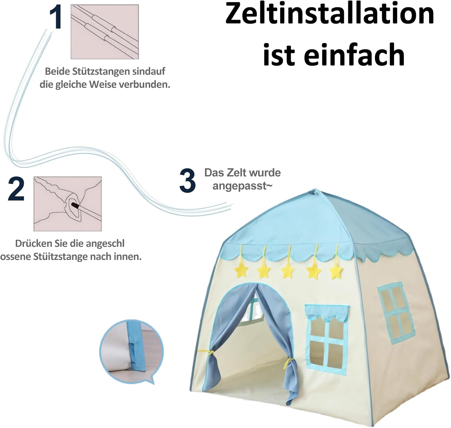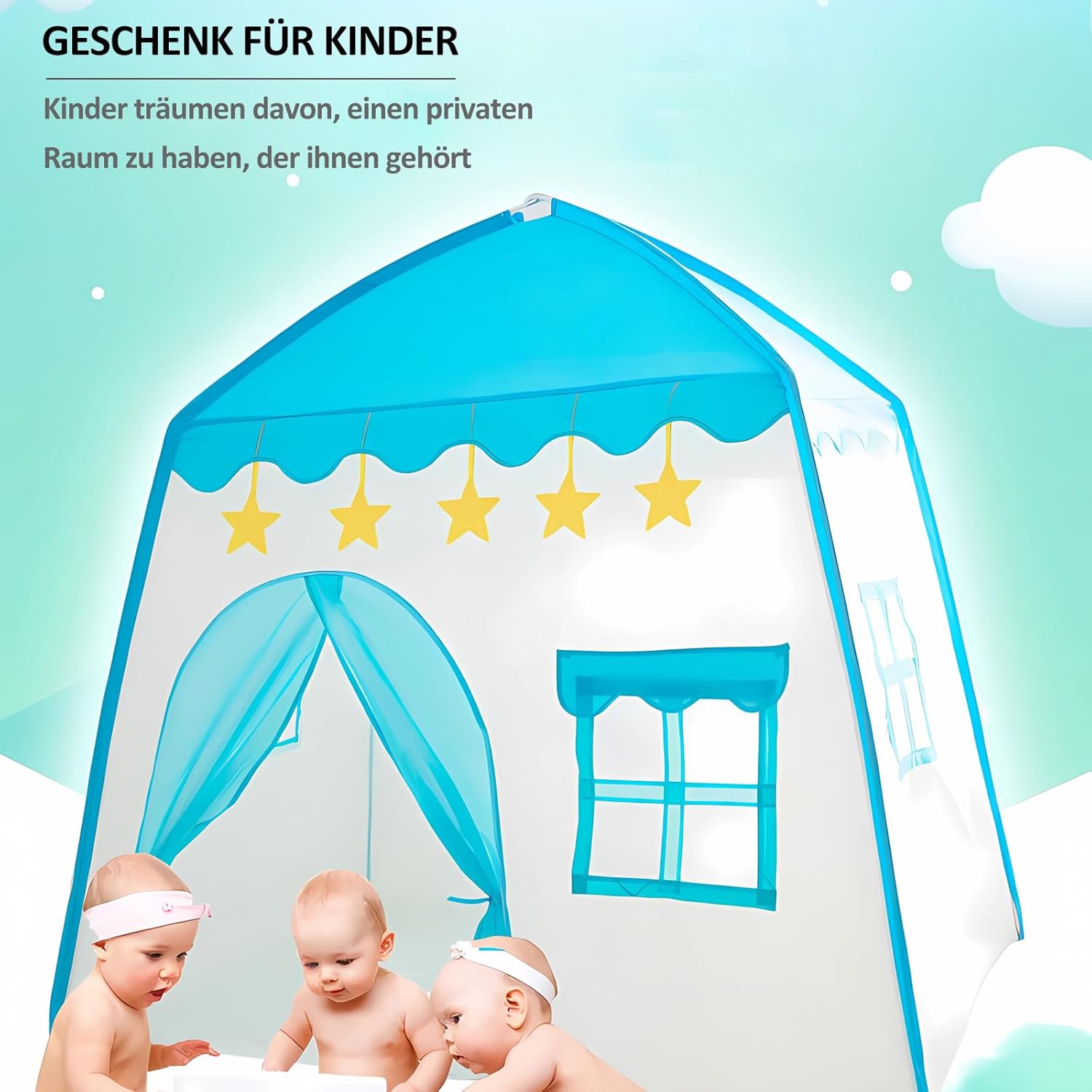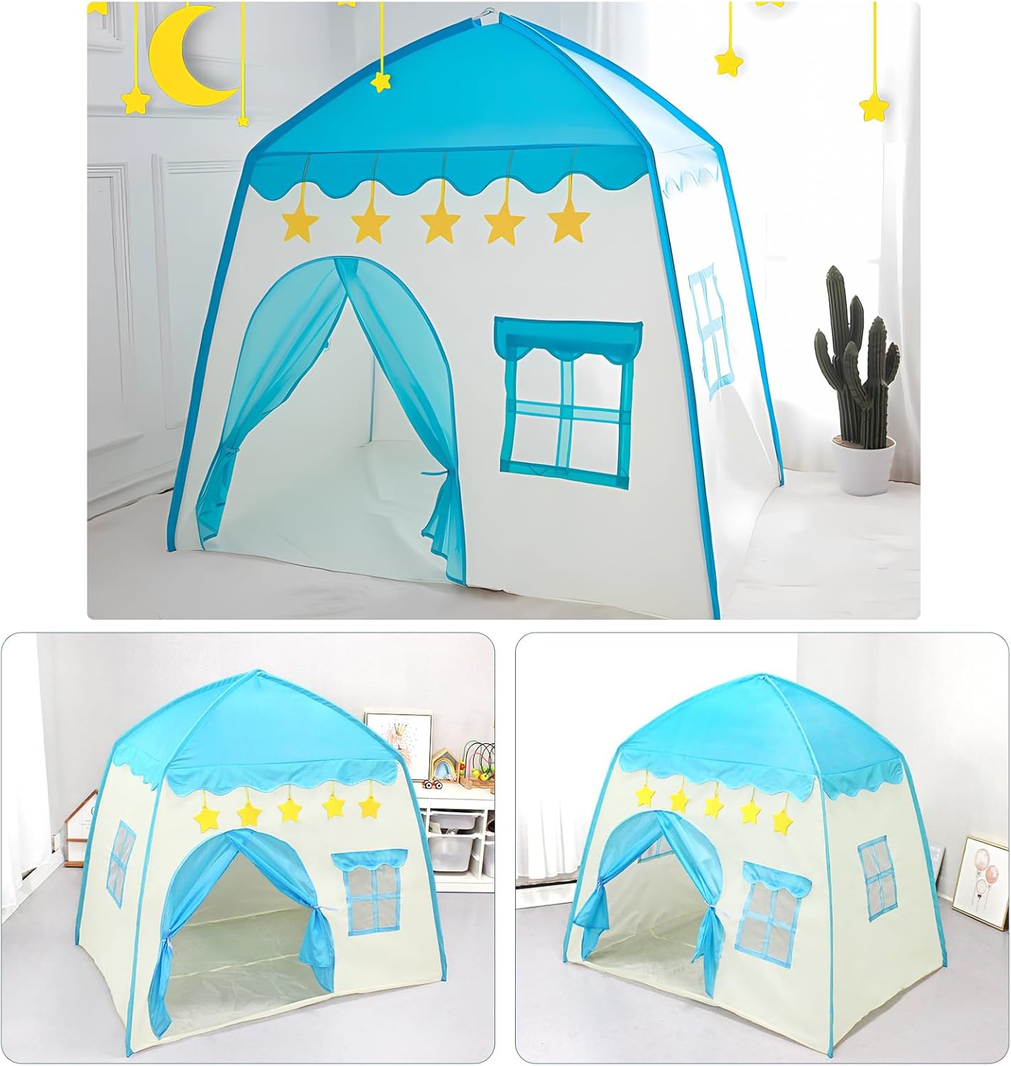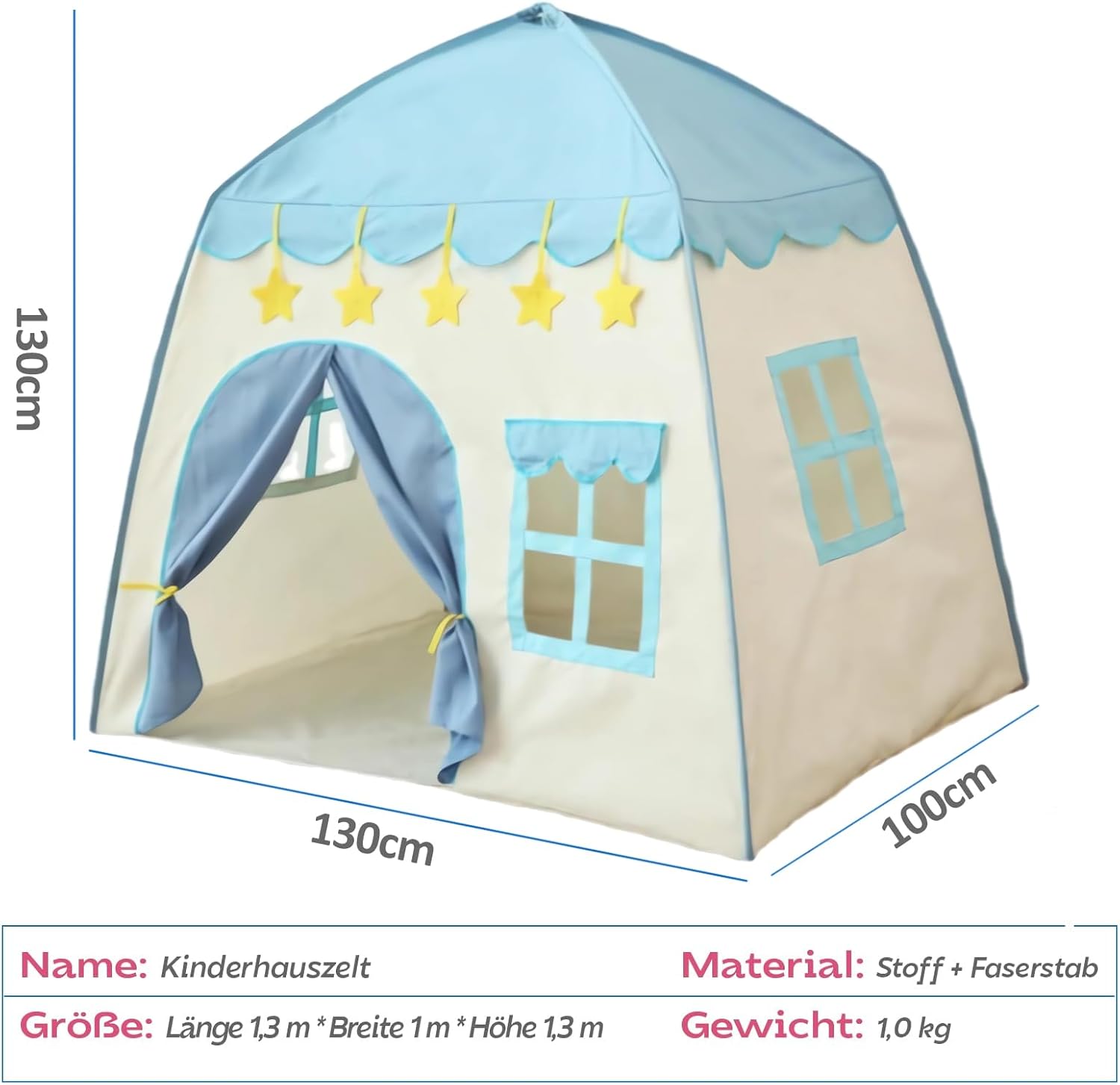 REGALO PER BAMBINI: i bambini sognano di avere uno spazio privato che appartiene a loro. Questa tenda per bambini per interni è un regalo più felice. Il bambino è più motivato e interessato a uno spazio indipendente dove può esplorare cose nuove. Design unico: questa tenda per bambini da interno realizzata in tessuto Oxford ispessito, molto forte e durevole, non toglie la seta ed è più comoda da pulire. Dimensioni: 130 x 100 x 130 cm. Facile da montare: molto facile da montare e smontare, senza bisogno di attrezzi. Il bambino può facilmente montare il proprio lucchetto sotto la supervisione di un adulto. La tenda da gioco per bambini può essere ripiegata in una piccola borsa e portata ovunque. Sicura: la tenda da gioco per bambini non ha bordi taglienti, quindi il bambino non può ferirsi. Tubo in PVC di alta qualità e giunti in plastica, nessuna sensazione acuta e ruvida. Tenda multiuso per bambini: utilizzare la tenda da gioco in camera da letto, feste, picnic, parchi, asilo nido, adatta per bambini per giocare all'interno e all'esterno. (Nota: se lo si utilizza all'aperto, mettere oggetti pesanti nella tenda)