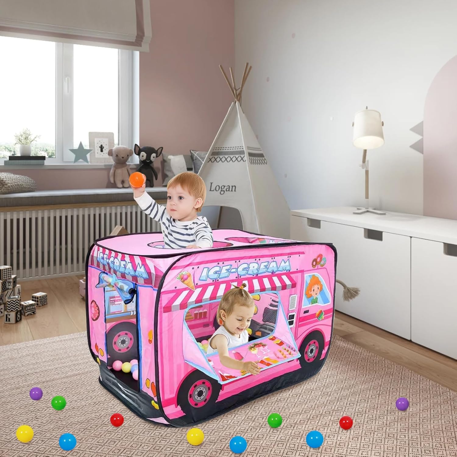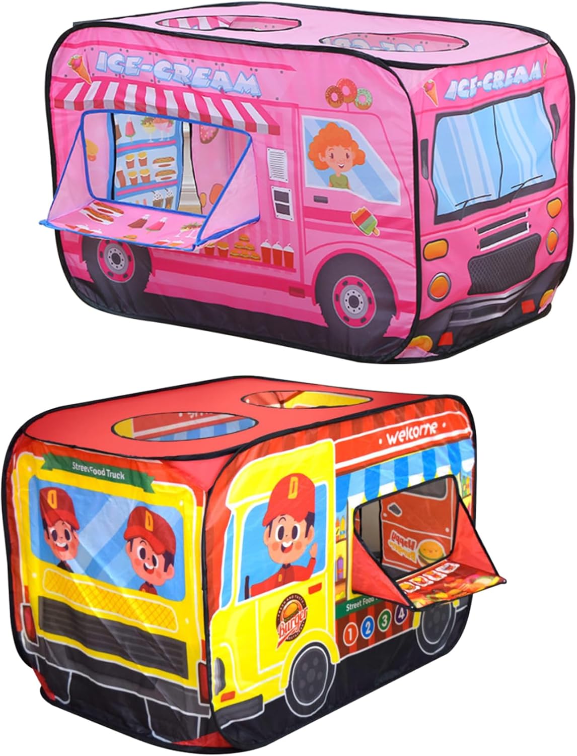 Portali: le tende su per bambini presentano un design leggero e pieghevole che li rende facili da trasportare, permettendoti di portarli al parco, alla spiaggia o alla casa di un amico per divertimento senza fine. Materiale traspirante: la casa di gioco è realizzata con un panno in poliestere ad alta densità, che è adatto alla pelle e traspirante, non si restringe, non si sbiadisce, è resistente all'usura e robusta, garantendo flusso d'aria e comfort durante il gioco..La tenda ha pali robusti e cuciture rinforzate per un uso duraturo. Design spazioso: la tenda per bambini misura 112x75x70 cm/44.09x29.53x27.56 pollici, con ampio spazio interno per più bambini che possono giocare insieme comodamente..Kids Up Tent Ice Cream Truck Facile da usare: la tenda da gioco UP adotta un design pop-up per un montaggio rapido e veloce e adotta un design della porta dell'otturatore a rulli con regolazione adesiva per una facile apertura e chiusura..La parte superiore adotta un design di ventilazione a doppia lucentezza, che è traspirante e ventilato, e può anche resistere..Tenda da gioco per i gelati Versatilità: sia perdati, avventure nel cortile o un accogliente angolo di lettura all'interno, questa tenda da gioco offre un intrattenimento infinito o uno spazio privato per i tuoi bambini..tenda da gioco per gioco di gioco