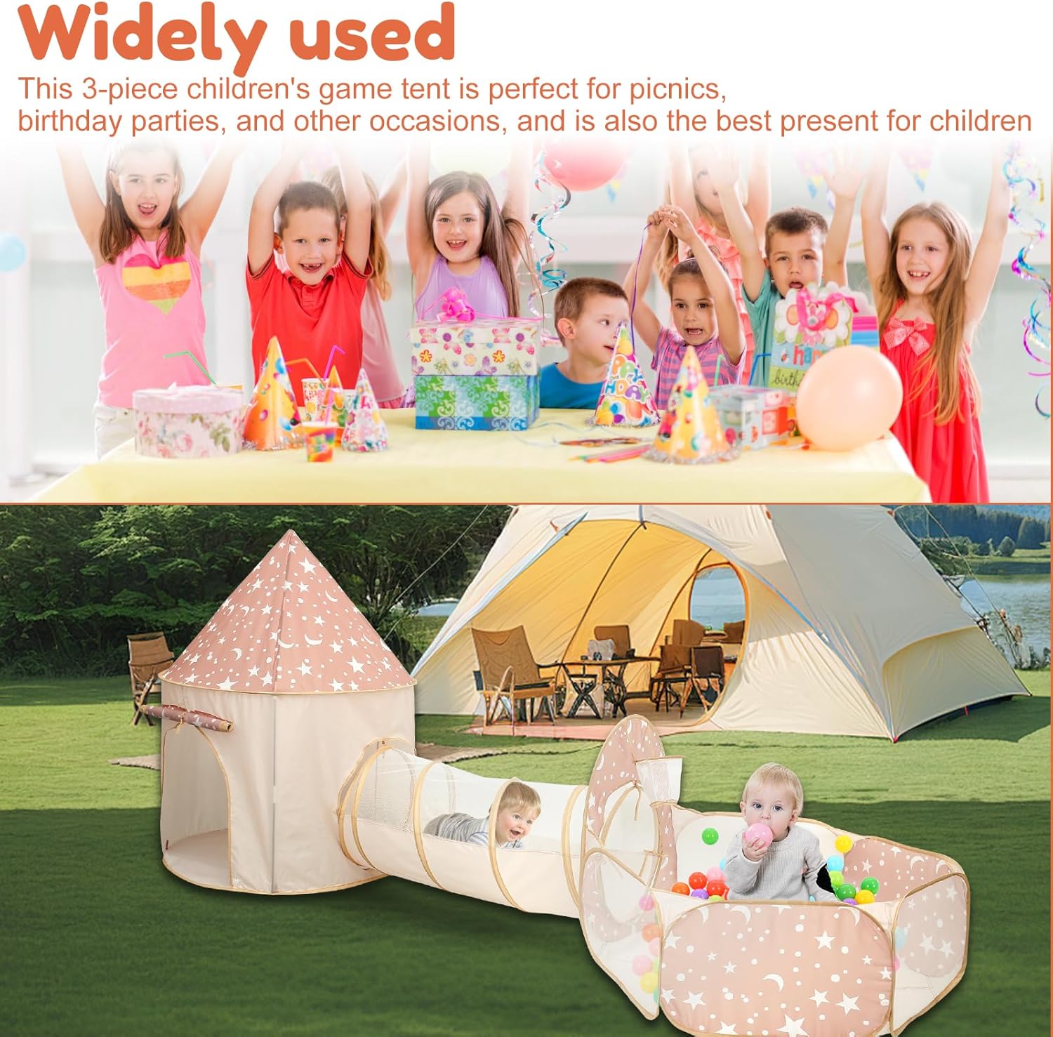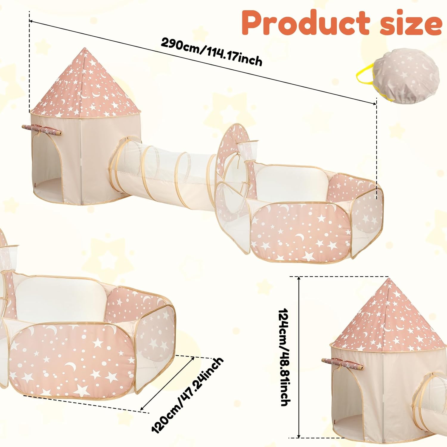 Divertimento illimitato: questo set da 3 pezzi per bambini tenda da gioco porta divertimento ai bambini. Nascondersi, gattonare, saltare e ritirarsi nelle tende da gioco per bambini dove i tuoi bambini avranno ore di divertimento e sono un ottimo posto per i bambini per imparare giocando Materiale del prodotto: il nostro set di tende da gioco per bambini è realizzato in materiale poliestere, che non ha odore irritante, è comodo ed è molto adatto per neonati e bambini. Il design a rete offre una migliore ventilazione Ampio utilizzo: questo set di 3 tende da gioco per bambini è ideale per attività all'asilo, picnic, riunioni di famiglia, feste di compleanno e altre occasioni, ed è anche il regalo ideale per i bambini in varie vacanze o compleanni Il set include: il set da 3 pezzi include una tenda, un tunnel e una fossa per palline, che possono essere utilizzati in combinazione o separatamente per adattarsi a diversi stili di gioco, consentendo ai bambini di immergersi in scene di gioco e godersi momenti di divertimento Facile da trasportare: con un design pieghevole, il tunnel per bambini può essere piegato in una borsa in pochi minuti, che non occupa spazio extra per la conservazione e può anche essere trasportato direttamente quando si esce, fornendo tempo di intrattenimento in qualsiasi momento e ovunque