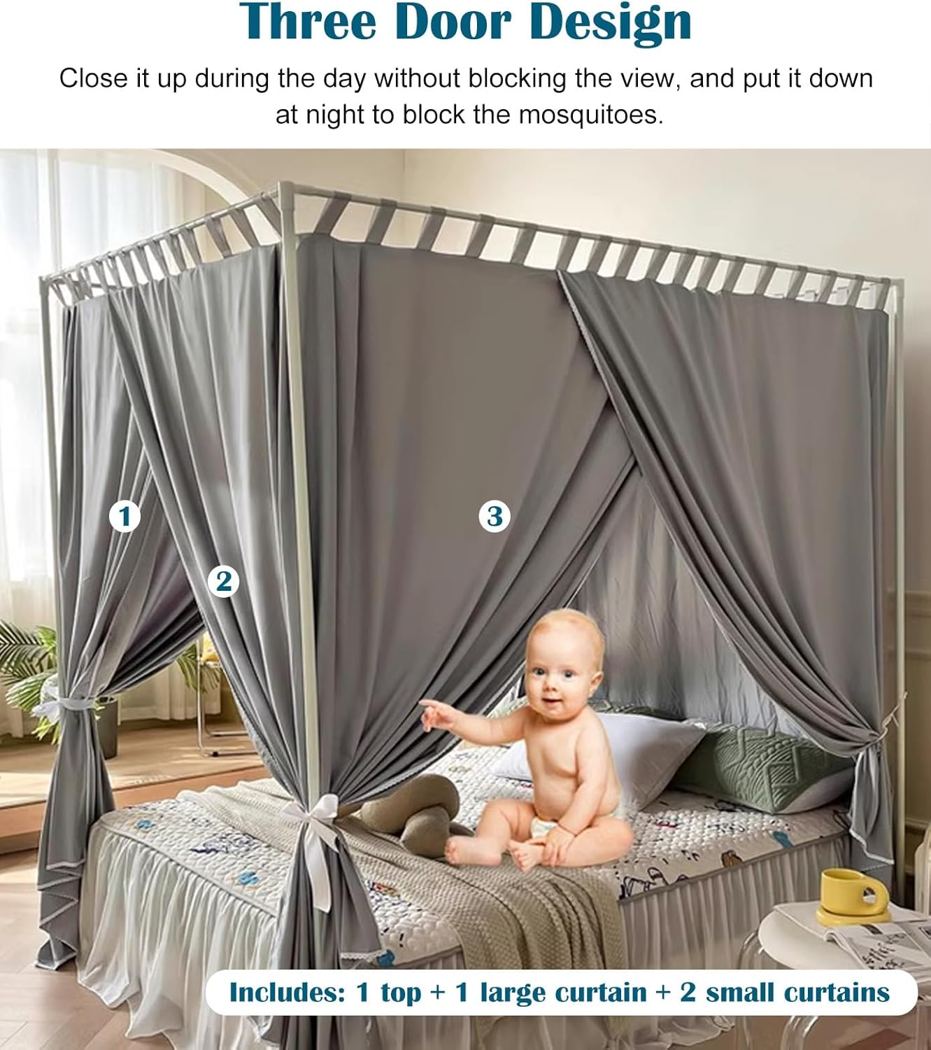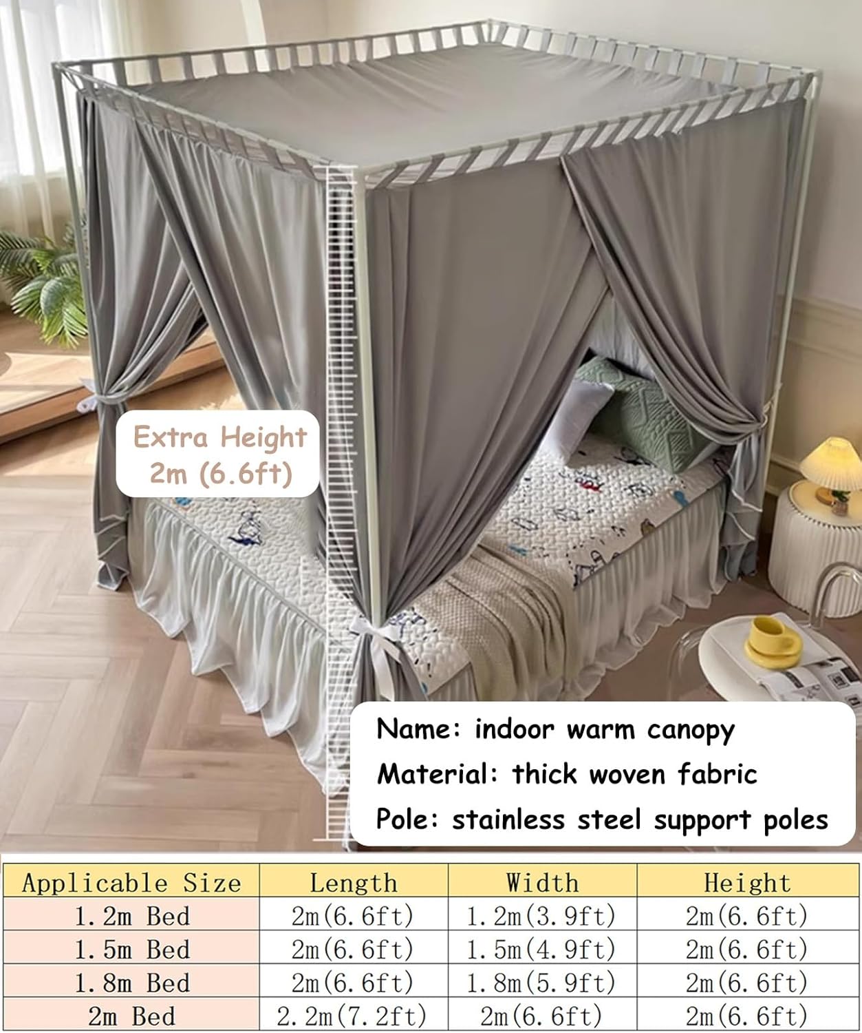 【Esperienza di sonno confortevole】 Questa rete da letto blocca le correnti d'aria nella stanza e fornisce un ambiente caldo per dormire; È possibile tirare 3 tende per consentire all'aria fresca di circolare, permettendoti di entrare e uscire liberamente senza disturbare gli altri.,Creazione di spazio privato: sia per adulti che per bambini, questo baldacchino è la soluzione ideale per evitare l'inconveniente di condividere una stanza con altri. Blocca la luce durante il giorno e ti regala uno spazio caldo e privato di notte. Materasso NON incluso 【Materiale spesso e resistente】 Il baldacchino del letto è realizzato in tessuto spesso a tre strati per un migliore calore ed è adatto a tutte le stagioni. I montanti in acciaio inossidabile forniscono un supporto stabilizzante che aiuterà il baldacchino del letto a mantenere la sua forma e a non abbassarsi. Altezza 2 m (6,6 piedi) 【Facile da installare e versatile】Assemblaggio rapido da parte di una sola persona. La nostra tenda lodge riparata ha la capacità di trasformare uno spazio interno aperto in una suite privata, creando privacy ovunque. Ideale per studiare, guardare film o meditare, il letto da tenda perfetto per ogni membro della famiglia 【Oscuramento all'85%】 Perfetto per un sonno tranquillo e ininterrotto mentre chiudi le tende del letto della tenda e ti sdrai nell'oscurità del tuo spazio tenda, permettendoti di sperimentare pace e tranquillità