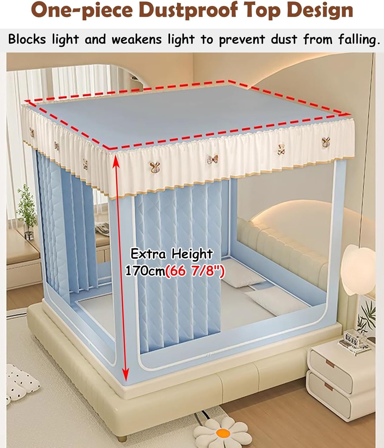 【Esperienza di sonno confortevole】 Questa rete da letto blocca le correnti d'aria nella stanza e fornisce un ambiente caldo per dormire; È possibile aprire le tende a 3 porte per far entrare aria fresca, comoda per entrare e uscire. Tenda della porta rimovibile con zanzariera, adatta a tutte le stagioni 【 Creazione di spazio privato 】 Sia per adulti che per bambini, questo baldacchino da letto è la soluzione ideale per evitare l'inconveniente di condividere la stanza con altri. Blocca la luce durante il giorno e ti regala uno spazio caldo e privato di notte. Materasso NON incluso 【Materiale spesso e durevole】 Il baldacchino del letto è realizzato in tessuto di fibra spessa con cotone incorporato per un migliore calore e può essere utilizzato in tutte le stagioni. I pali in ferro verniciato forniscono un supporto stabile, che può aiutare la tenda da letto a mantenere la sua forma senza cedimenti. Extra alta 170 cm (66 7/8 pollici) 【Luogo per rilassarsi e concentrarsi】 La nostra tenda cabina rifugio è il luogo perfetto per studiare, guardare un film o meditare. Due tasche angolari sono perfette per cellulari, chiavi e altri piccoli oggetti. Può essere utilizzato sul letto o come tenda da pavimento, stanza a tema da campeggio, i letti da pavimento incoraggiano i bambini a essere indipendenti.,Facile da installare e utilizzare: assemblaggio rapido da parte di una sola persona. Può essere utilizzato anche con tuo figlio per esercitare abilità pratiche e promuovere il legame. Inoltre, la tenda da letto è dotata di tasche interne per riporre giocattoli e libri per aiutarli a coltivare buone abitudini