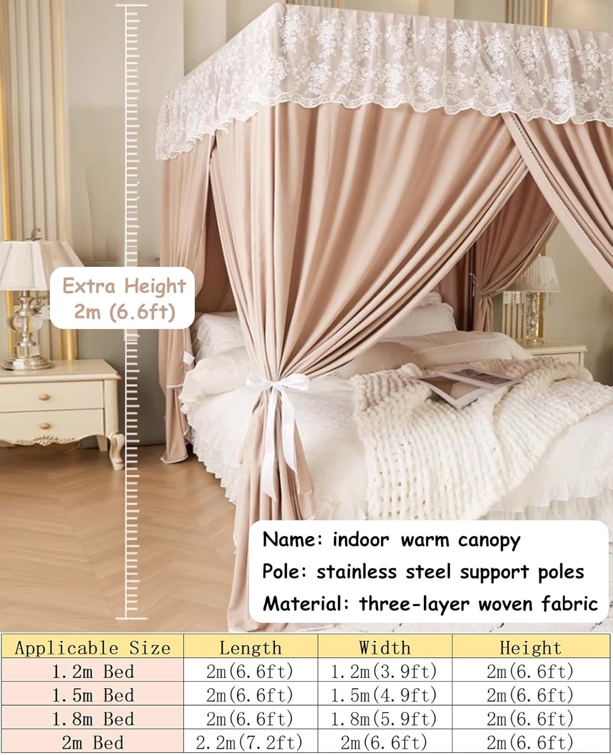 【Esperienza di sonno confortevole】 Questa rete da letto blocca le correnti d'aria nella stanza e fornisce un ambiente caldo per dormire; È possibile tirare 3 tende per consentire all'aria fresca di circolare, permettendoti di entrare e uscire liberamente senza disturbare gli altri.,Creazione di spazio privato: sia per adulti che per bambini, questo baldacchino è la soluzione ideale per evitare l'inconveniente di condividere una stanza con altri. Blocca la luce durante il giorno e ti regala uno spazio caldo e privato di notte. Materasso NON incluso 【Materiale spesso e resistente】 Il baldacchino del letto è realizzato in tessuto spesso a tre strati per un migliore calore ed è adatto a tutte le stagioni. I montanti in acciaio inossidabile forniscono un supporto stabilizzante che aiuterà il baldacchino del letto a mantenere la sua forma e a non abbassarsi. Altezza 2 m (6,6 piedi) 【Facile da installare e versatile】Assemblaggio rapido da parte di una sola persona. La nostra tenda lodge riparata ha la capacità di trasformare uno spazio interno aperto in una suite privata, creando privacy ovunque. Ideale per studiare, guardare film o meditare, il letto da tenda perfetto per ogni membro della famiglia 【Oscuramento all'85%】 Perfetto per un sonno tranquillo e ininterrotto mentre chiudi le tende del letto della tenda e ti sdrai nell'oscurità del tuo spazio tenda, permettendoti di sperimentare pace e tranquillità