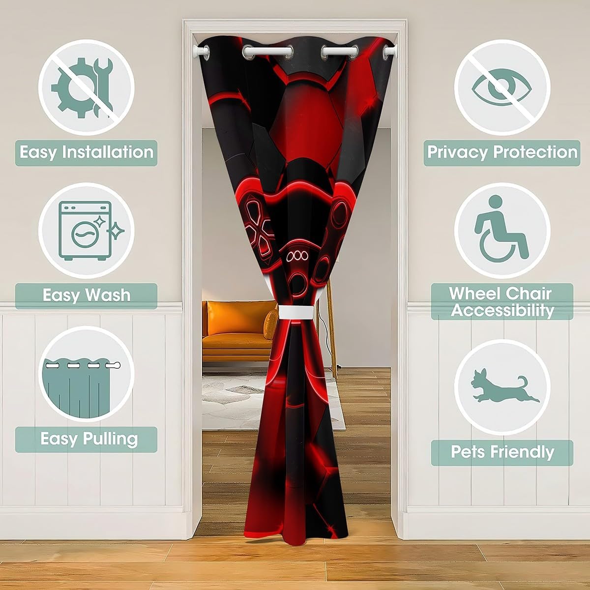 Tenda divisoria per stanza da gioco, tenda per porta, privacy, per bambini, ragazzi, ragazze, adolescenti, decorazione per la stanza di gioco rossa e nera, 106 x 203 cm, 1 pannello gamepad a nido