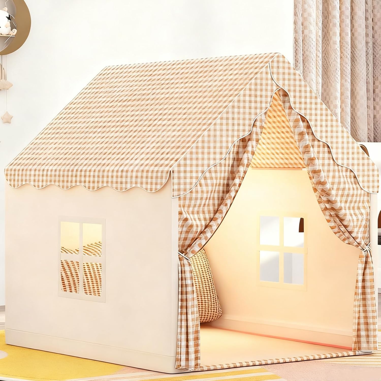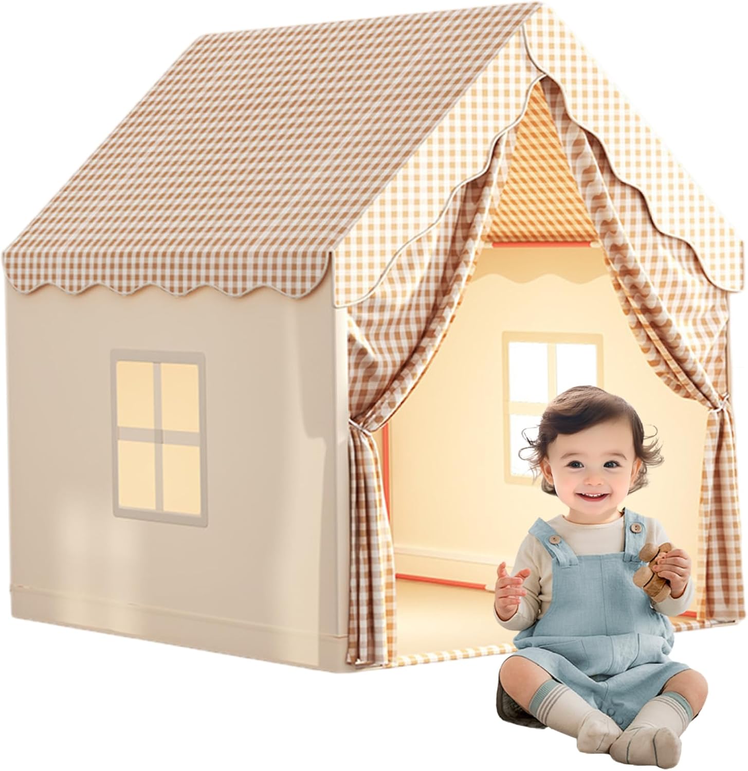 Regali perfetti per occasioni speciali: ideale per Natale, compleanni o altre celebrazioni, questa tenda da gioco per bambini è un regalo premuroso ed emozionante che incoraggia il gioco indipendente e avventure divertenti ogni giorno. Affascinanti dettagli di porte e finestre: dotata di una porta avvolgibile e graziose alette delle finestre, questa casetta da gioco ha un design realistico e interattivo, che ispira creatività e gioco fantasioso per neonati e bambini piccoli. Facile da installare e piegare: il design pieghevole in tessuto consente un rapido montaggio e smontaggio senza attrezzi..È leggero e portatile, perfetto per spostarsi tra la camera da letto, il cortile o il soggiorno. Design traspirante e confortevole: realizzato in tessuto morbido e traspirante con finestre in rete, garantisce un eccellente flusso d'aria mantenendo lontani gli insetti..I bambini possono godersi un ambiente di gioco fresco, accogliente e sicuro. Spazio di gioco spazioso e divertente: misurando 41x47x50 pollici, questa tenda per bambini offre molto spazio affinché i tuoi piccoli possano giocare, leggere e immaginare, creando un mondo privato solo per loro all'interno o all'esterno.