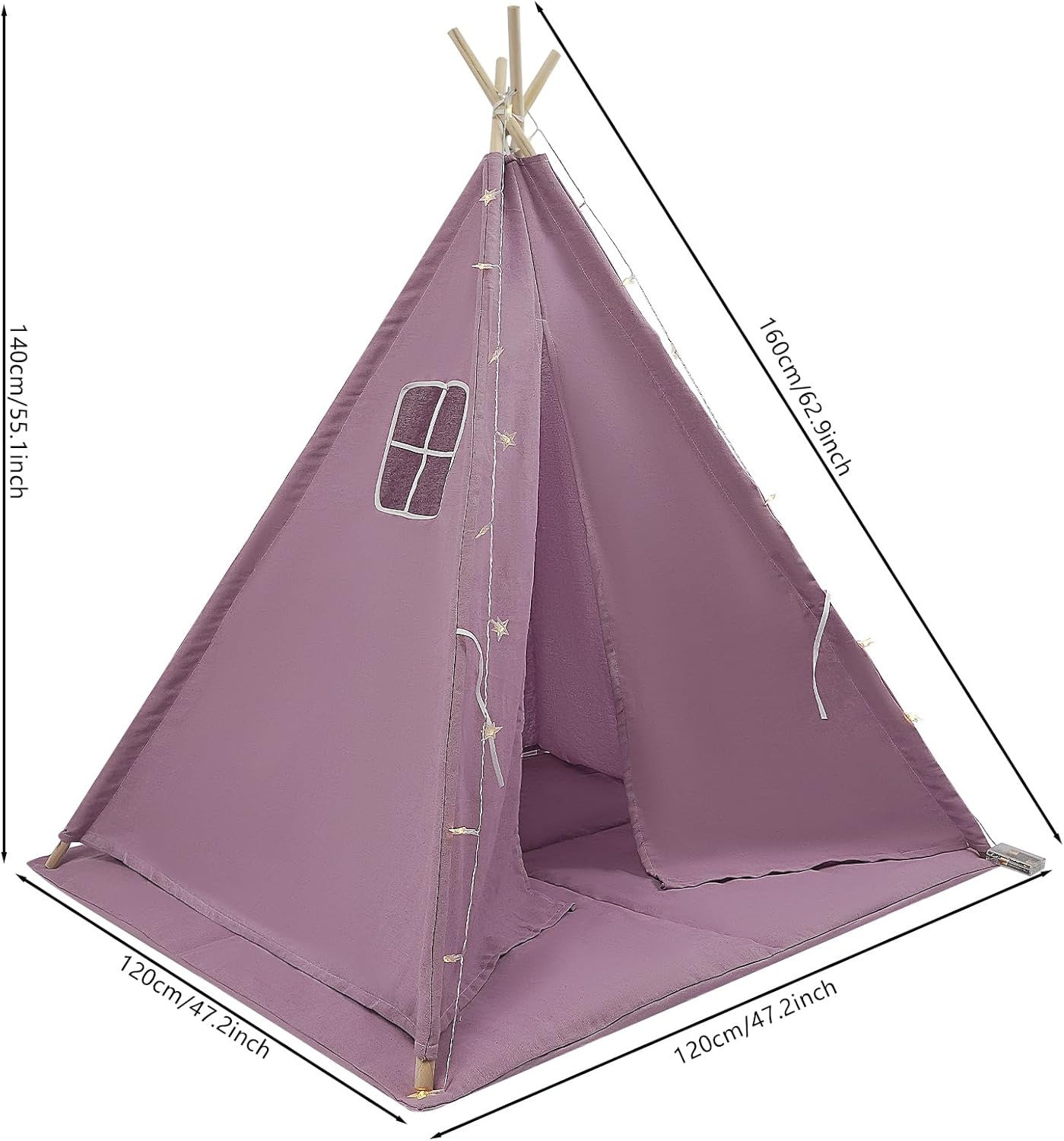 Materiale di alta qualità: la tenda per bambini è realizzata in cotone resistente e lino, è delicata sulla pelle, resistente agli strappi e garantisce un ambiente di gioco sicuro per i bambini. Spaziosa e confortevole: con 120 x 120 x 140 cm, la tenda da gioco offre molto spazio per 1-3 bambini per giocare, leggere o riposare. Adatto per bambini da 1 a 12 anni. Struttura stabile e sicura: i pali in legno spesso e la struttura antiscivolo rendono la tenda Tipi particolarmente stabile e impediscono il ribaltamento durante il gioco. Con catena luminosa e tappetino: la catena luminosa inclusa crea un'atmosfera accogliente, il morbido tappetino da gioco aumenta il comfort quando si è seduti, sdraiati o giocati. Facile da montare e pieghevole; grazie alla semplice struttura e alle istruzioni (lingua italiana non garantita), la casetta da gioco si monta rapidamente e si ripone in modo salvaspazio, perfetta per interni ed eventi.