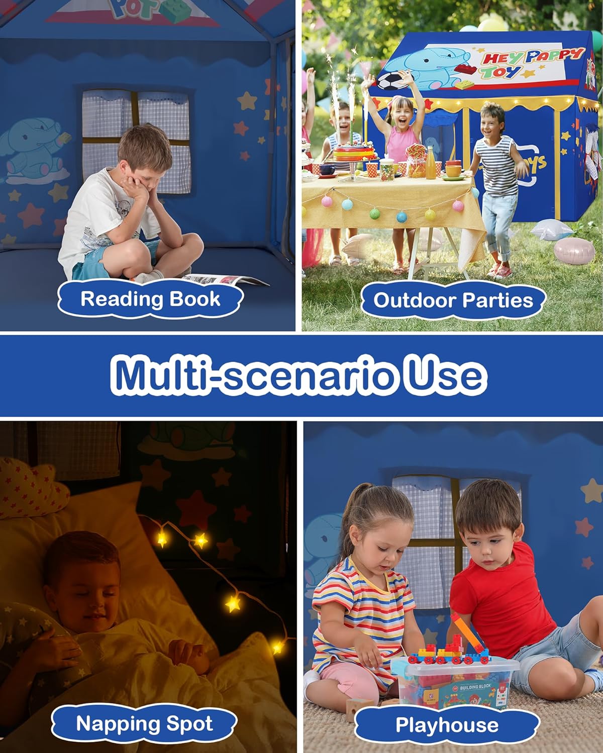 Spazio Generoso:Questa Tenda per Bambini da interno misura 123 cm (L) x 100 cm (P) x 123 cm (H), offrendo ampio spazio per un materassino. È perfetta come angolo lettura, piccolo rifugio, tenda per sleepover o per feste di ruolo con fino a 3 bambini. Un accessorio indispensabile tra i mobili per cameretta o i giochi da playroom. Adorabile e Pratica:Questa robusta e sicura Tenda Casetta da Gioco è ideale per leggere, giocare o persino dormire. Include una coperta, elementi decorativi e belle luci per creare uno spazio privato e accogliente. Design Incantevole e Regalo Perfetto:Con tendina arrotolabile, finestra con paletta, decorazioni e illuminazione, questa Tenda da Gioco per Bambini è il regalo ideale per i 3-7 anni. Adatta per Natale, compleanni o qualsiasi occasione speciale, stimola il gioco di immaginazione. Un'ottima scelta per arrichire la collezione di mobili e attrezzature da gioco indoor per bambini. Montaggio Semplice:Nessun attrezzo richiesto! Un adulto può montare la tenda in 15 minuti grazie alle istruzioni dettagliate. Che sia in casa, in giardino o al parco, il montaggio è un gioco da ragazzi: basta premere con fermezza per fissare i poli e assicurare la copertura in tessuto. Venite a costruire questa casetta con i vostri bambini! Durevole e Lavabile:Realizzata in poliestere di alta qualità, questa Tenda per Bambini è costruita per durare. La sua struttura robusta garantisce sicurezza durante le avventure imaginative. Il tessuto è comodamente lavabile, per mantenere intatto il suo fascino e offrire sempre uno spazio pulito, perfetta per qualsiasi arredamento da cameretta.