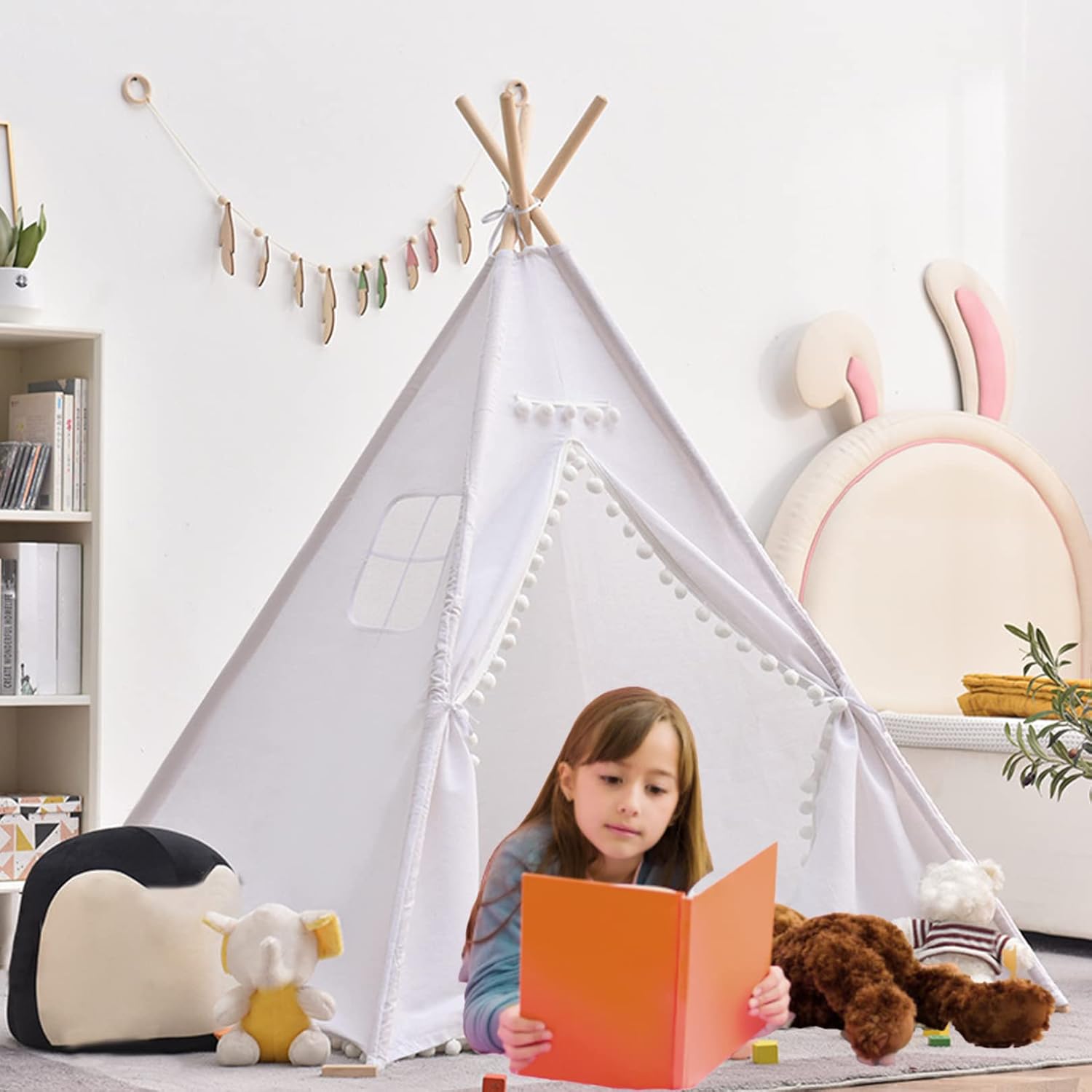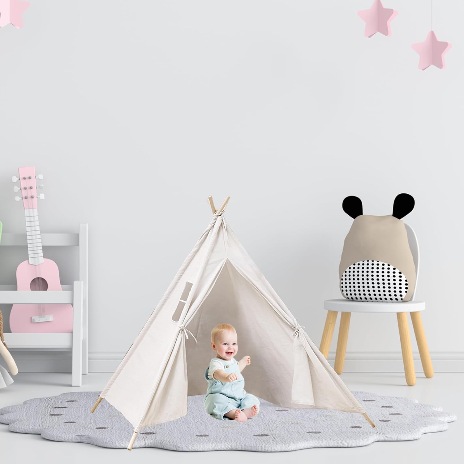 Regalo ideale per i bambini: su misura come un regalo ideale, questa teatro stimola la creatività e incoraggia il gioco di ruolo, fornendo ai bambini uno spazio speciale per scatenare la loro immaginazione, ospitare amici o creare le loro avventure di narrazione in un ambiente di gioco in stile indiano vibrante e coinvolgente. Easy Assembly and Portability: impostare senza sforzo questo teatro all'interno o all'esterno in pochi minuti e quando il gioco è finito, smontare facilmente e riposare nel sacco da stoccaggio incluso..La sua leggera e portatile lo rende perfetto per le date di gioco o per le avventure spontanee..I bambini giocano a tende da tenda per ragazze Finestra traspirante e lavabile: dotato di una finestra traspirante, questa tenda da gioco promuove la circolazione dell'aria fornendo al contempo una vista sull'ambiente circostante, garantendo un'area giochi comoda e ventilata per i bambini mentre si impegnano in ore di gioco fantasioso..Gioca alle tende per le ragazze tenda per bambini spazio e graffiti Fun: la tenda da gioco con 120x120 cm/47.24x47.24 pollici di base e 130 cm/51,18 pollici di altezza..Può ospitare fino a 3 bambini, anche tuo figlio può leggere e cosplay con i suoi amici all'interno. Tenda bianca, i bambini possono graffiti a piacimento e usare la loro immaginazione per creare la loro tenda preferita..Tenda per bambini Play House Sicuro da giocare: le tende dei nostri bambini sono realizzate in lino di cotone traspirante naturale e i pali della tenda sono realizzati in legno robusto (diametro della cornice: 2 cm/0,79 pollici), adatti alla pelle e morbida, senza dissolvenza e stabile..Queste case di gioco in stile indiano creano spazio divertente in cui i bambini possono giocare e rilassarsi. Inoltre, uno striscione decorativo di bandiera aggiunge talento e carattere al fascino estetico della tenda..P