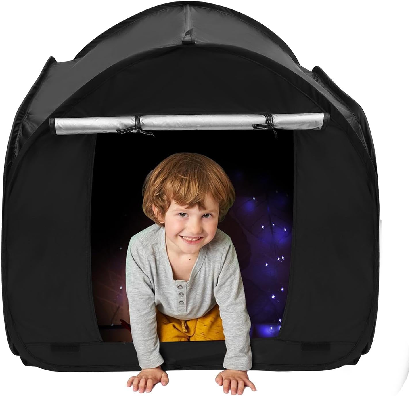 Spazio calmo e rilassante: incoraggiali a rilassarsi in uno spazio rilassante e rilassante con la nostra tenda sensoriale. Realizzata per bambini con esigenze uniche, la tenda offre una fuga dal caos e crea un'atmosfera tranquilla. Sicurezza creativa: lascia che i tuoi ospiti godano dello spazio confortevole e confortevole in questa tenda sensoriale. L'orlo e il telaio robusti garantiscono sicurezza, mentre la porta con cerniera facile da usare garantisce sicurezza. Stimolo sensoriale: la nostra tenda sensoriale per lei offre uno spazio delizioso e rilassante per giocare e rilassarsi con un design a rulli per un facile accesso e un ambiente completamente protetto per la stimolazione sensoriale e avventure da sogno. Oasi ombreggiata: la nostra tenda sensoriale per lei offre un'oasi fresca e buia perfetta per le esigenze sensoriali. Il materiale rivestito in argento blocca la luce solare per un ambiente rilassante e sicuro. Assemblaggio senza problemi: prova un campeggio senza stress con la nostra tenda sensoriale per coloro che non necessitano di assemblaggio o strumenti. Installato in soli 20 secondi, piegato e riposto in 2 minuti. Perfetto per il gioco spontaneo all'aperto o l'allenamento indoor.