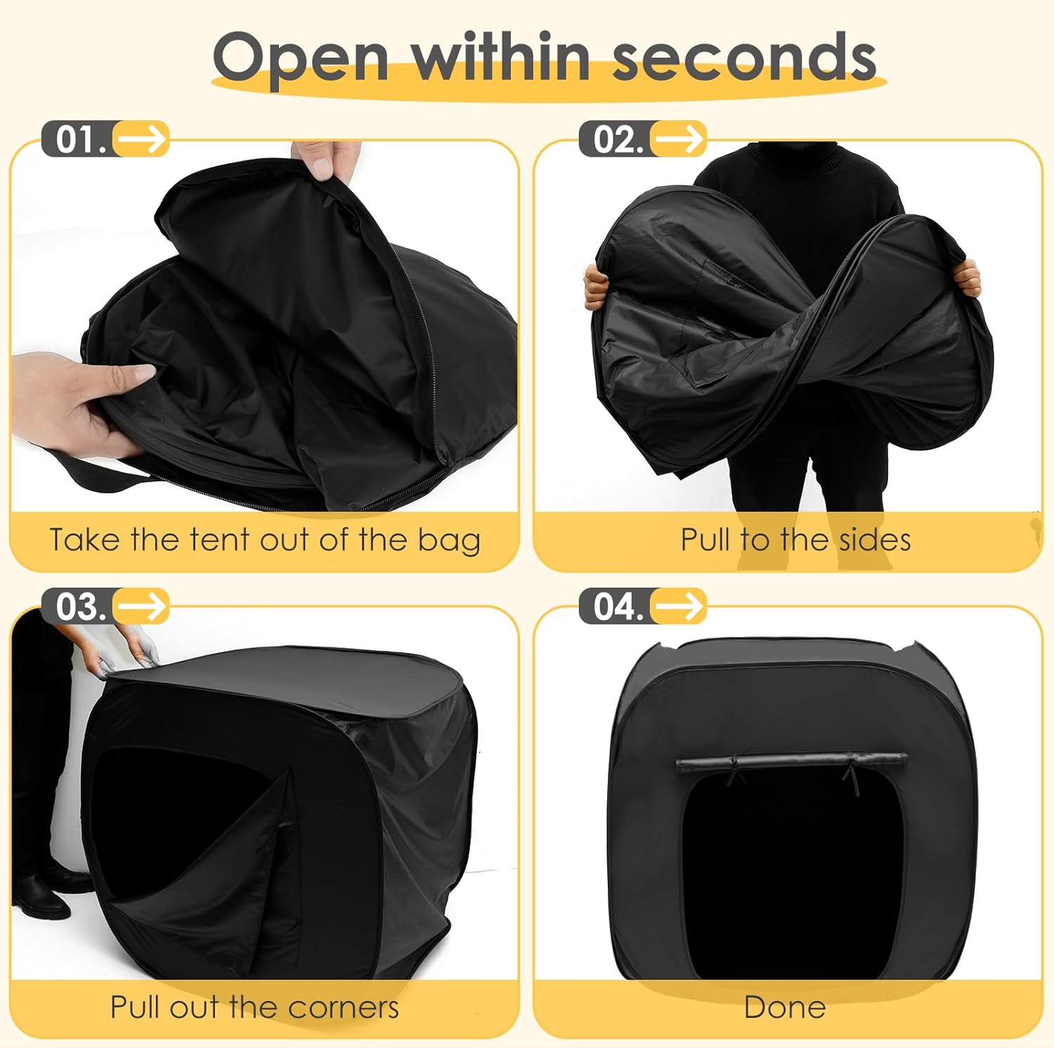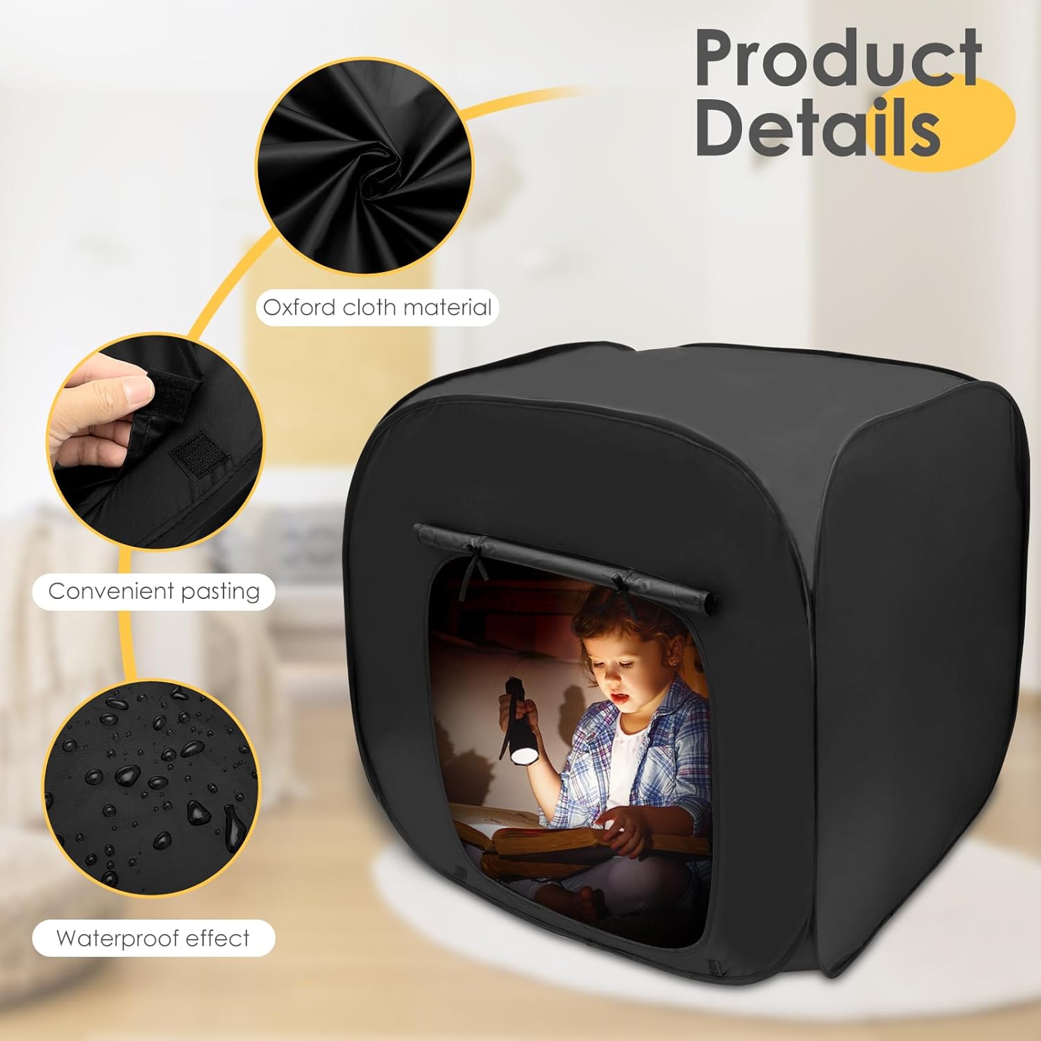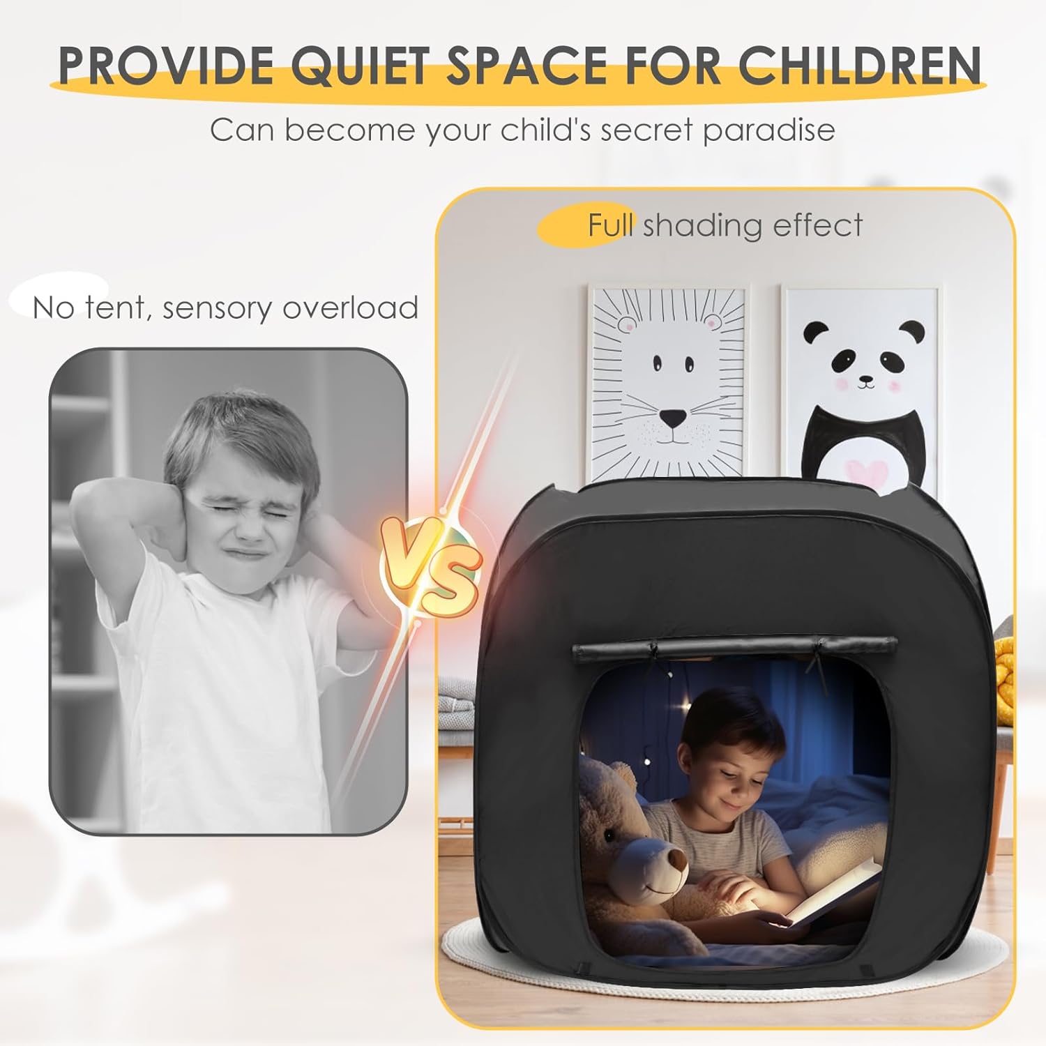 【Offri un ambiente tranquillo al tuo bambino】Una mini tenda sensoriale può diventare il paradiso segreto del tuo bambino. Le tende oscuranti sono il rifugio ideale dove i bambini possono esplorare la loro immaginazione, leggere o semplicemente rilassarsi in pace. 【Effetto di oscuramento totale】 La nostra tenda sensoriale è appositamente progettata per i bambini con autismo. Realizzato in tessuto Oxford oscurante ad alta densità per creare un ambiente calmo e buio. È ancora più divertente con faretti e giocattoli luminosi. 【Pop-up istantaneo】 Questa tenda autismo può essere aperta in pochi secondi e piegata in due minuti. Non sono necessari pali o chiodi. Lo spazio è spazioso (90*90*90cm) e può ospitare uno o due bambini, promuovendo il gioco sociale pur mantenendo un'atmosfera accogliente. La porta con cerniera più ampia e più alta garantisce un facile ingresso e uscita. 【Migliora l'attenzione e l'impegno】 La tenda sensoriale blocca le distrazioni esterne e offre uno spazio tranquillo ai bambini. Senza sovraccarico sensoriale, i bambini possono impegnarsi più a fondo in attività come la lettura e l'apprendimento, migliorando così la loro concentrazione. Leggera e portatile: la tenda pop-up per bambini è realizzata in tessuto Oxford leggero e resistente, leggero e molto mobile. Facile da piegare, spostare e trasportare; perfetto per la casa o la classe. Gli angoli tranquilli possono aiutare i bambini con bisogni speciali fornendo loro il proprio spazio dedicato in qualsiasi momento e in qualsiasi luogo.