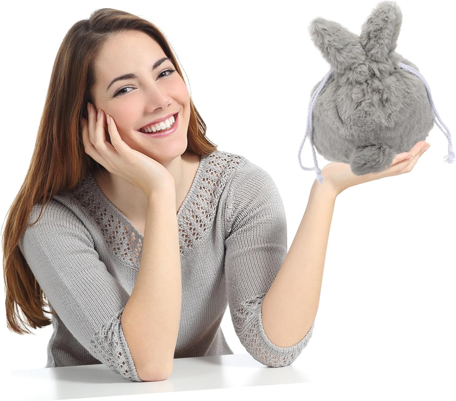 Borse per la conservazione di cosmetici: simpatiche borse per la conservazione di coniglietti di peluche soffici mini organizzatori di coulisse per animali campanelli borsa giocattoli sacchetti di dadi per animali imbalsamati tasca per trucco viaggio grigio cosmetico Borse a forma di dadi di peluche: - sofisticata elegante: una borsa pelosa piena di elementi, così carina. Borsa con coulisse: occasioni casual come fare shopping, uscire, visitare, ecc. con viso e corpo, è come un peluche quando è pieno di strumenti per il trucco. Borsa con coulisse in peluche: occasioni casual come fare shopping, uscire, visitare, ecc. Custodia per il trucco: simpatiche borse per la conservazione di coniglietti di peluche dal design leggero, facili aprire e trasportare.