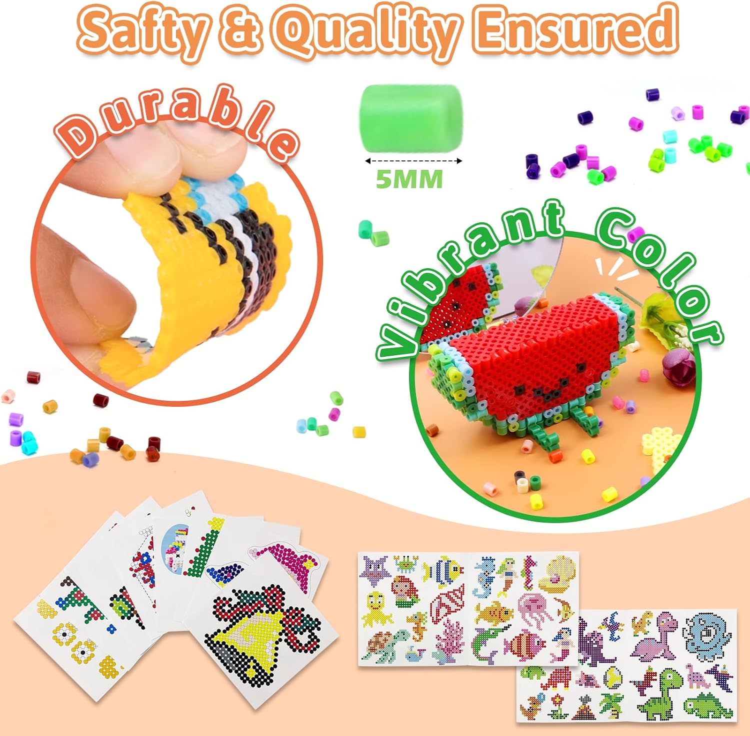 🎀【Contenuto Della Confezione】Il set di perline da stirare per ragazze include: 12000 perline da stirare in 36 colori, 5 piastre trasparenti per perline da stirare, 10 disegni, 5 fogli di carta da stiro, 1 pinzetta, 3 portachiavi, 4 cordini per portachiavi, 5 decorazioni, 5 ganci di plastica colorati, 20 anelli metallici, 5 spille e 1 scatola di stoccaggio. Un set completo di strumenti per sperimentare la creazione di diversi modelli. 🦄【Materiale Sicuro】Le perline da stirare sono realizzate in materiale EVA ecologico. Le perline da stirare glitterate sono colorate, sicure, inodori e adatte ai bambini. Le perline da stirare grandi per bambini sono realizzate con materiale resistente e durevole. Sono facili da indossare, si sciolgono e si piegano meno durante la stiratura. Questo set di perline da stirare include anche istruzioni dettagliate per un uso ottimale. I bambini possono realizzare i disegni con fiducia. 👑【Immaginazione e Creatività】Queste perline da stirare possono aiutare te e il tuo bambino a progettare portachiavi fai-da-te, creazioni 2D o 3D che insegnano ai bambini la pazienza. Migliorano anche le abilità motorie fini dei bambini e la coordinazione occhio-mano. Con varie forme e colori, i bambini possono creare i propri disegni e poi stirarli per creare opere d'arte durature. 🌈【Facili da Usare】Le perline da stirare sono molto facili da usare. Posiziona le perline su una piastra adatta per perline da stirare in base al modello o alle tue esigenze, quindi copri con carta da stiro e stira leggermente fino a quando le perline si sciolgono. Poi stira l'altro lato e aspetta che si raffreddino per completare l'opera d'arte. 👸【Regalo Perfetto】Per i bambini che amano essere creativi, le perline da stirare possono essere utilizzate per realizzare portachiavi, magneti da frigorifero, decorazioni per la tavola, sottobicchieri o opere d'arte decorative. Queste perline da stirare fai-da-te vengono fornite in una bellissima confezione regalo, rendendole un regalo ideale per i bambini a Natale, Capodanno, compleanni o altre occasioni indimenticabili.