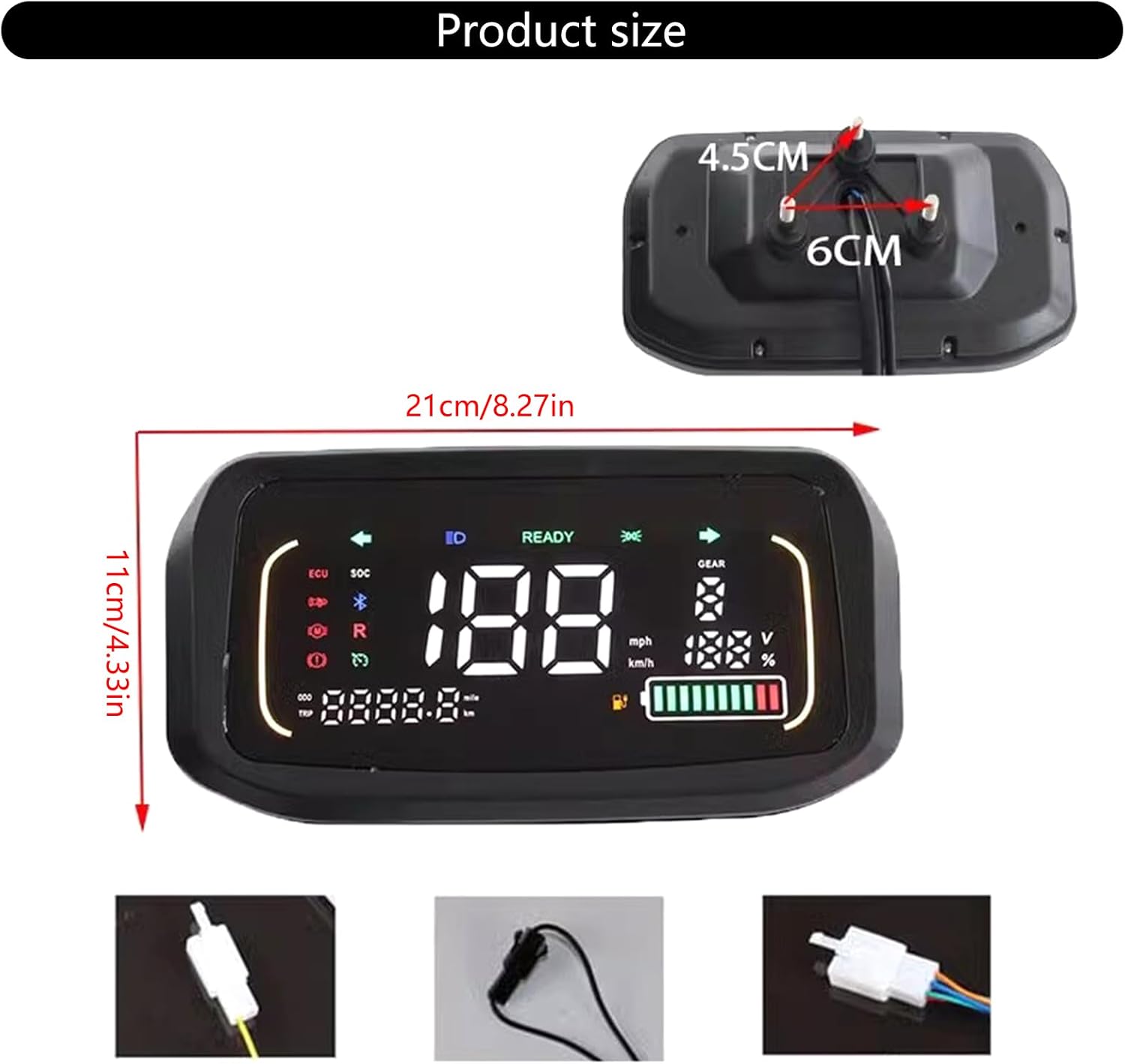 Per i proprietari scooter elettrici che cercano migliorare la funzionalità e l'estetica, appassionati fai -da -te che amano personalizzare le loro giostre e i tecnici riparazione che cercano parti sostituzione affidatate Perfetto per l'evento pendolarismo, corse piacevoli o gare professionali, questa dashboard consente agli utenti monitorare in modo efficiente i dati scooter in reale, ottimizzare i piani viaggio e migliorare l'esperienza guida dashboard scooter elettrici è progettato per versatilità, supportando più tensioni 48 V, 60 V e 72V, rendendolo per ampie gamme scooter elettrici, garantendo la soddisfazione utente Dotato un chiaro display a LED, questo cruscotto fornisce chiara visibilità della velocità, del chilometraggio e delle condizioni della batteria, anche alla luce solare diretta, grazie ai suoi design luminosi e intuitivi Realizzato con materiali resistenti agli urti e impermeabili, cruscotto garantisce prestazioni coerenti in varie condizioni meteorologiche, offrendo aggiornamenti moderni e tecnologici per qualsiasi scooter elettrico