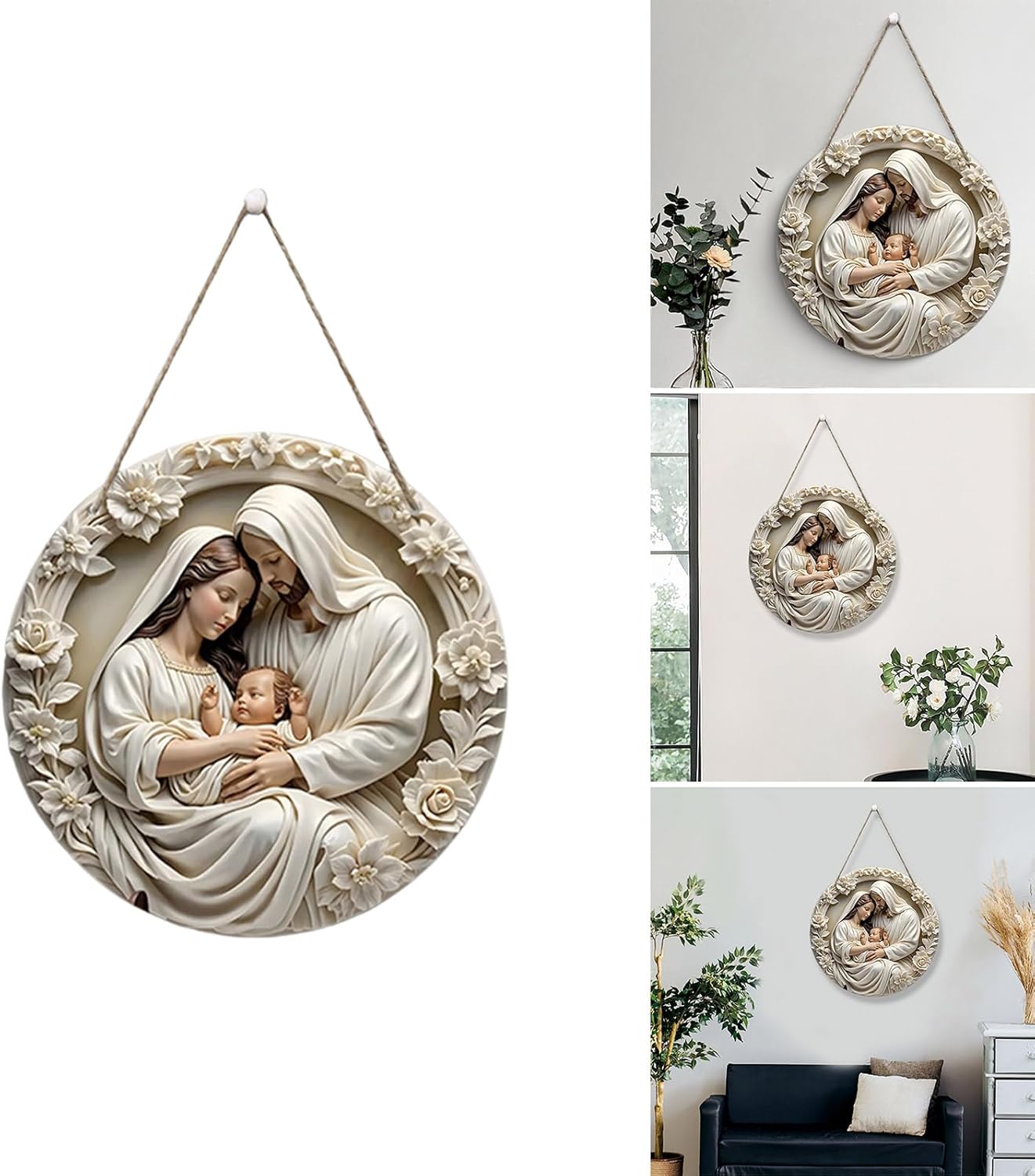 Per vari ambienti come chiese, case e uffici, questa decorazione funge da ornamento elegante o elemento essenziale per cerimonie religiose. Questo cartello in legno presenta affascinanti figure di Gesù e della Vergine Maria, che incarnano sentimenti religiosi e benedizioni, rendendolo un simbolo di fede per i credenti. Realizzato in legno con meticolosi dettagli intagliati a mano. Questa placca presenta un colore duraturo ed è impermeabile e antipolvere, garantendo facile manutenzione e durata. Per le persone che praticano simboli religiosi significativi per migliorare il proprio ambiente spirituale Abbellisci il tuo sacro con bellissime placche che combinano perfettamente arte e devozione, fornendo un'aggiunta a qualsiasi collezione di decorazioni.