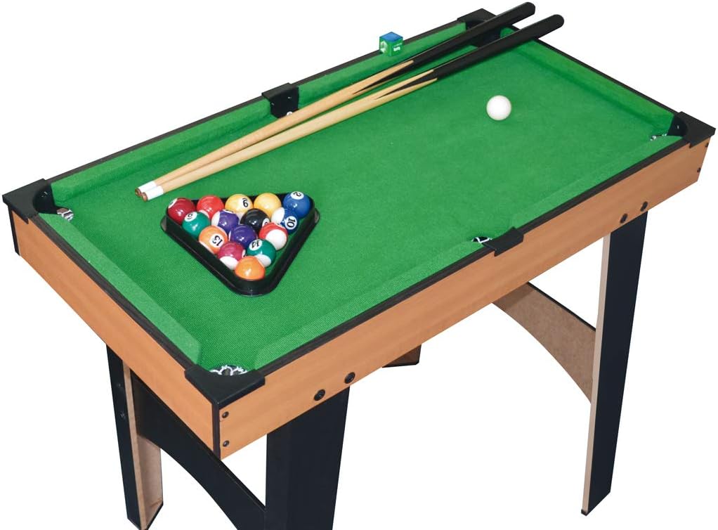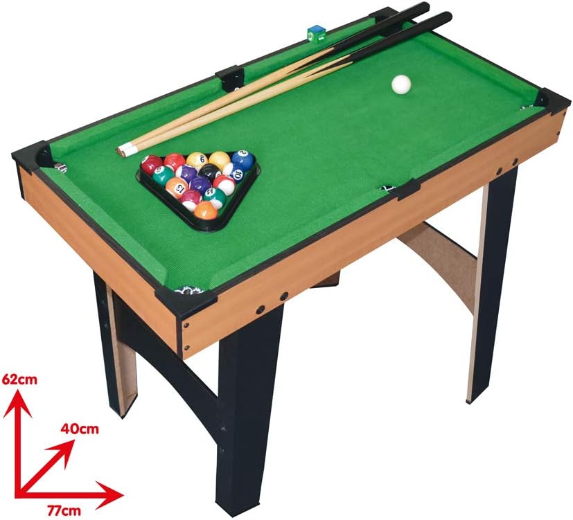 Vere palle da biliardo Stecche in legno Include: 2 stecche, 15 palle, gesso e un triangolo Dimensioni: 77 x 62 x 40 cm Aiuta a migliorare l'intelligenza spaziale e stimola la competizione sportiva