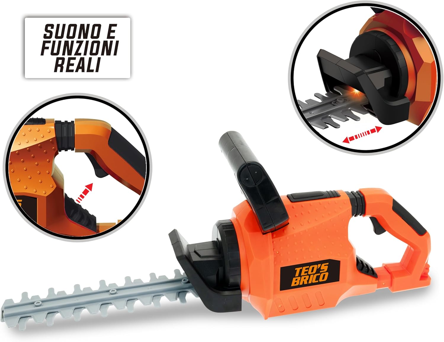 RISULTATO DI GIOCO REALISTICO: il tagliasiepi giocattolo è perfetto per i piccoli appassionati di fai da te e gli amanti del giardino! Con suoni realistici e funzionalità interattive, i bambini potranno divertirsi simulando il lavoro degli adulti in tutta sicurezza. Funzionamento a batteria: Funziona a batteria (non inclusa), questo tagliasiepi offre un'esperienza di gioco wireless in modo che i bambini possano utilizzarlo in completa libertà e sicurezza. Effetti sonori e movimento: il tagliasiepi produce suoni realistici che rendono l'esperienza ancora più coinvolgente. La lama simulata si muove per imitare il taglio, garantendo un gioco sicuro e divertente. Include visiera: Per un'esperienza ancora più autentica, il set include una visiera protettiva in plastica robusta, proprio come quelle utilizzate dai veri giardinieri! Design ergonomico e sicuro: la maniglia è progettata per una presa comoda e i materiali utilizzati sono durevoli e sicuri per i bambini.
