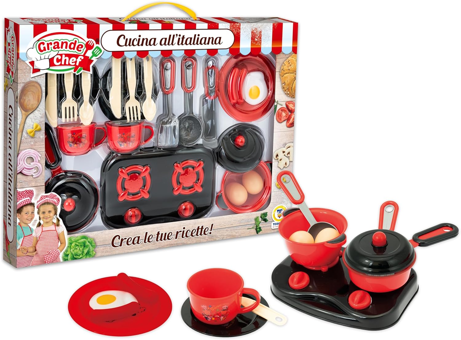 ✅ CON ACCESSORI REALISTICI: Il set è dotato di un'ampia gamma di accessori per cucinare e servire, Pentole e Padelle con coperchi, ideali per simulare la preparazione dei pasti. Posate e Utensili da Cucina come mestoli, cucchiai e palette, per mescolare e servire con precisione. Cibo giocattolo, tra cui uova, salsicce e altri ingredienti per un’esperienza ancora più coinvolgente. Fornello Giocattolo, che permette ai bambini di "cucinare" proprio come i grandi! ✅ MATERIALI SICURI E DESIGN REALISTICO: Realizzato con materiali atossici e di alta qualità, il set garantisce sicurezza e durata nel tempo. Le superfici sono lisce e prive di spigoli, perfette per i più piccoli. ✅ STIMOLA L'APPRENDIMENTO: I bambini potranno imitare mamma e papà in cucina, sviluppando fantasia e coordinazione.