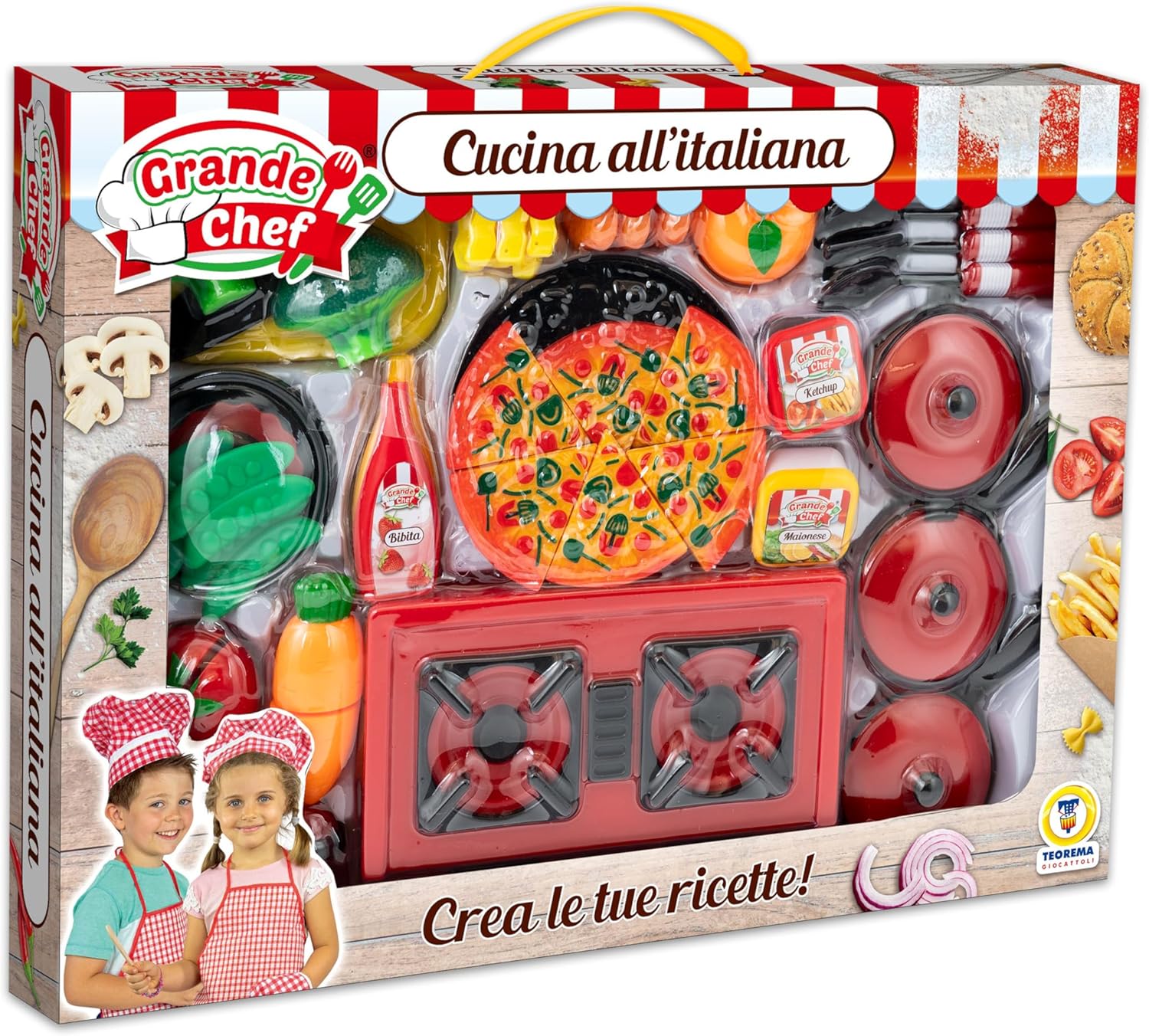 ✅ CON FORNELLO: All'interno è presente il fornello a 2 fuochi per cucinare come i veri Chef! ✅ CON ACCESSORI: Pentola e Padella con coperchio ideali per preparare gustose pietanze, Utensili da cucina come cucchiai, spatole e altri strumenti indispensabili. ✅ FRUTTA E VERDURA CON VELCRO: Divertiti a "tagliare" gli alimenti con il coltello giocattolo! ✅ GIOCO EDUCATIVO: Ideale per stimolare la creatività del bambino permettendogli di sperimentare con il cibo giocando in totale sicurezza.