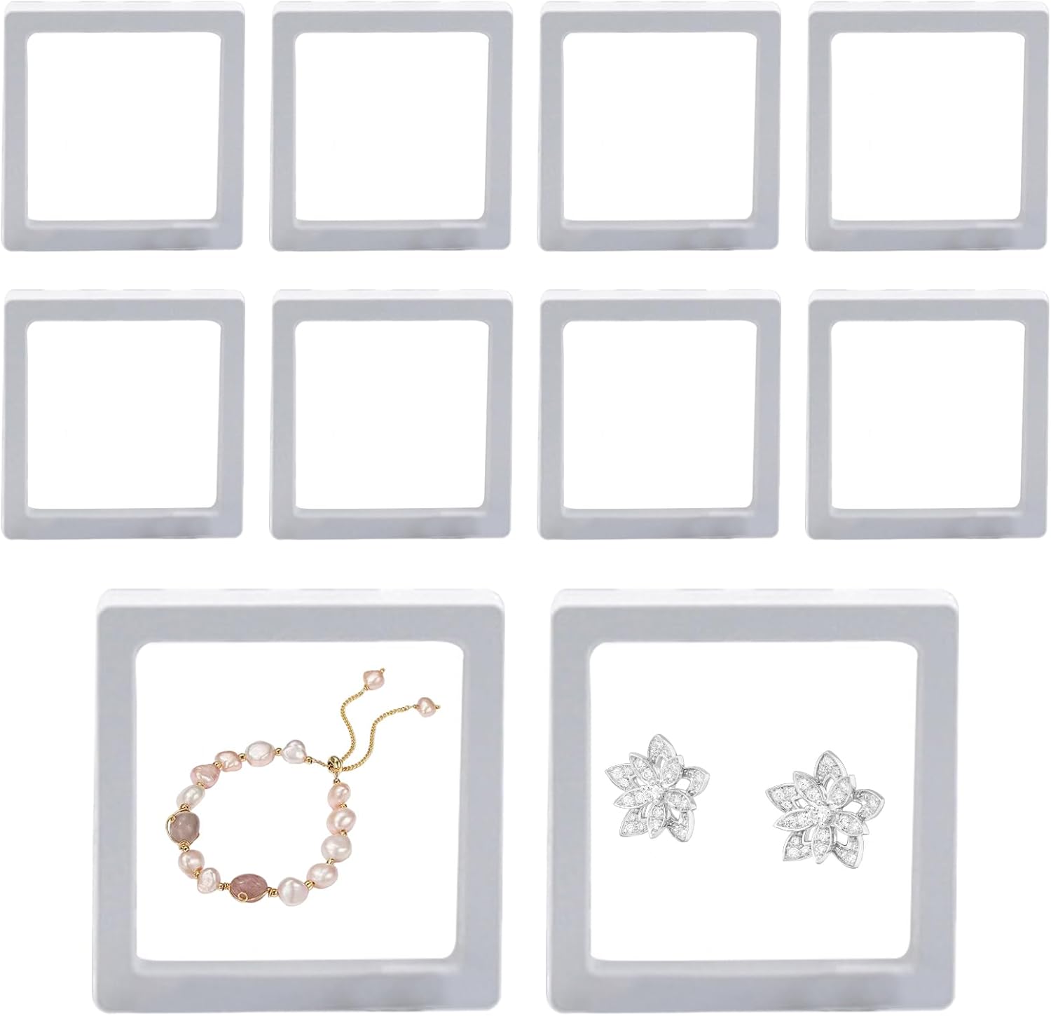Design unico: il design innovativo della scatola di visualizzazione mobile 3D crea un affascinante effetto mobile 3D fronte-retro che attira gli occhi degli spettatori sui tuoi oggetti e previene i danni. Costruzione affidabile: la scatola di visualizzazione mobile 3D offre una protezione senza precedenti per i tuoi oggetti di valore. Costruito con una pellicola in PE trasparente e un robusto ABS, garantisce una sostenibilità delicata e duratura su cui possiamo contare per un lungo periodo di tempo. Organizzatore efficiente: mostra la tua collezione con la nostra confezione regalo galleggiante 3D. L'elegante spazio di archiviazione ti consente di esporre i tuoi tesori da ogni angolo senza rimuoverli. Approfittate dell'archiviazione a lungo termine e del ricorso senza Internet. Soluzione di visualizzazione compatta: con le sue dimensioni compatte, questa vetrina 3D mobile evita l'ingombro e può essere posizionata in modo indipendente, rendendola adatta per l'esposizione di gioielli. Ampio utilizzo: migliora la bellezza della tua collezione di gioielli con la nostra confezione regalo mobile 3D. Il suo design innovativo crea un'eccellente rappresentazione olografica di pietre preziose, anelli e bracciali, offrendo un'esperienza visiva unica e sorprendente.