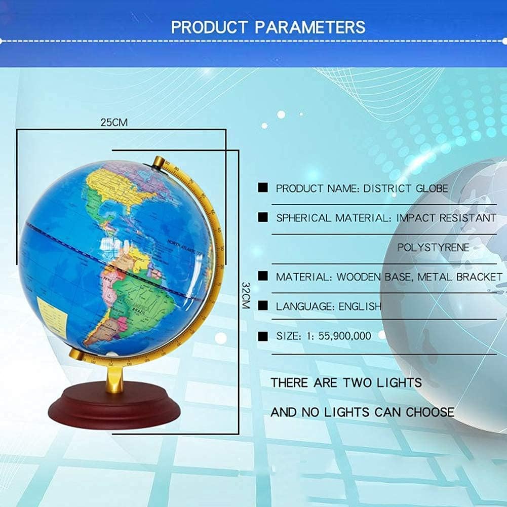Ampia applicazione: l'insegnante insegna immagini stereoscopiche e l'apprendimento divertente contribuisce a migliorare l'impressione dello studente. Può essere utilizzato anche come decorazione for la scrivania di casa o ufficio, ed è anche un ottimo regalo che sorprenderà ospiti, amici e la festa del papà e della mamma. Dimensioni: 32 cm / 12,59 pollici, incluso il globo. Globo: 25 cm / 9,84 pollici Rotazione forzata esterna: il globo non può ruotare automaticamente. for ruotarlo, è necessario ruotarlo, ma la rotazione si interromperà dopo 5 minuti; continuando a ruotarlo, riprenderà a ruotare. Il prodotto è lavabile e può essere lavato direttamente se è sporco da molto tempo. Incoraggiare i bambini curiosi ad esplorare il mondo della scienza.