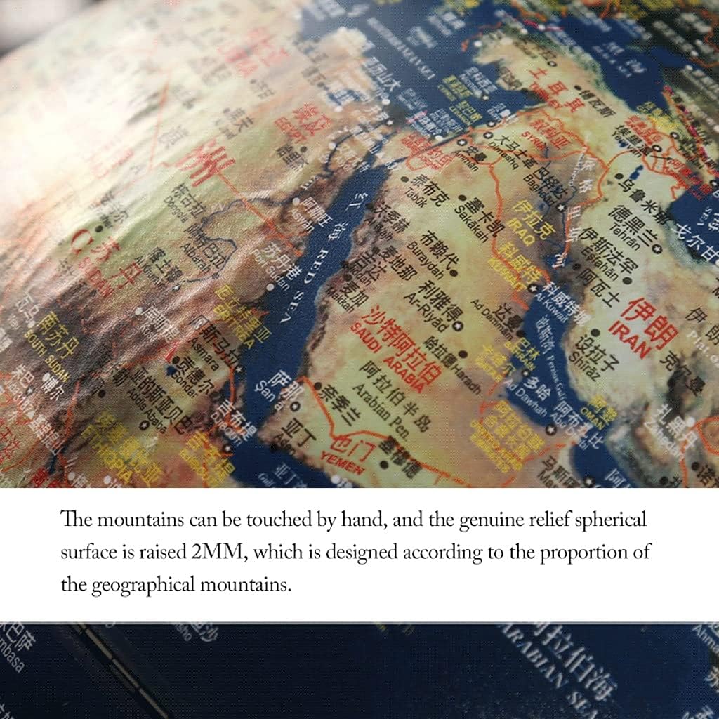 Terra, Globo terrestre da 17,7 Pollici con Supporto da Pavimento, Globo terrestre Illuminato in Rilievo 3D, Globo terrestre Alto 51,1 Pollici, Decorazione a 720°.